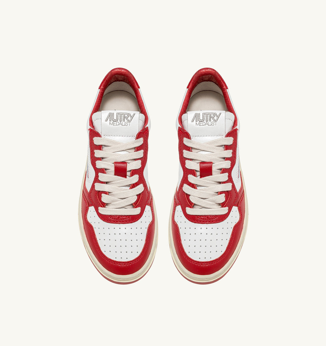 BASKET MEDALIST LOW EN CUIR BICOLOR BLANC ET ROUGE Autry
