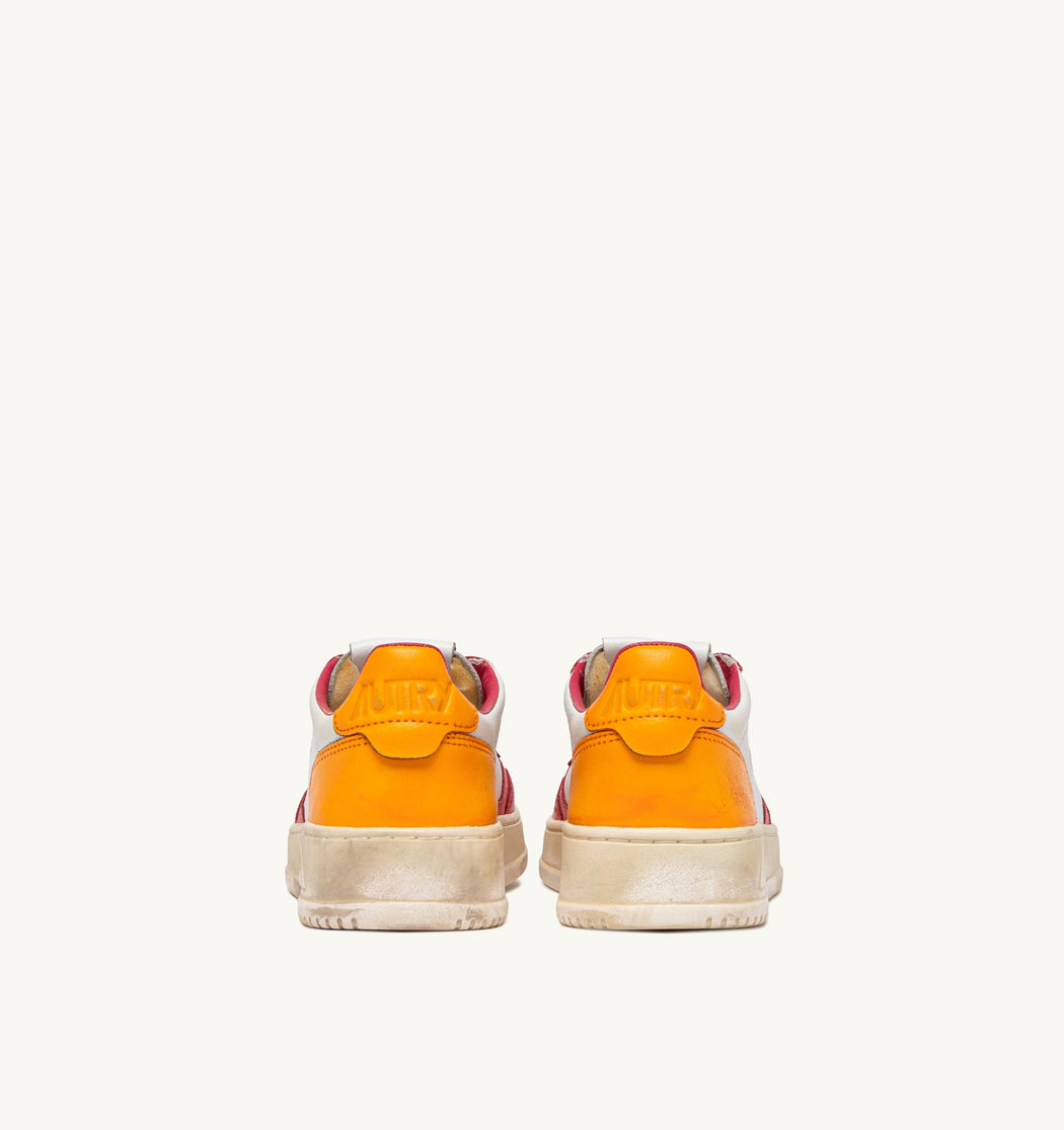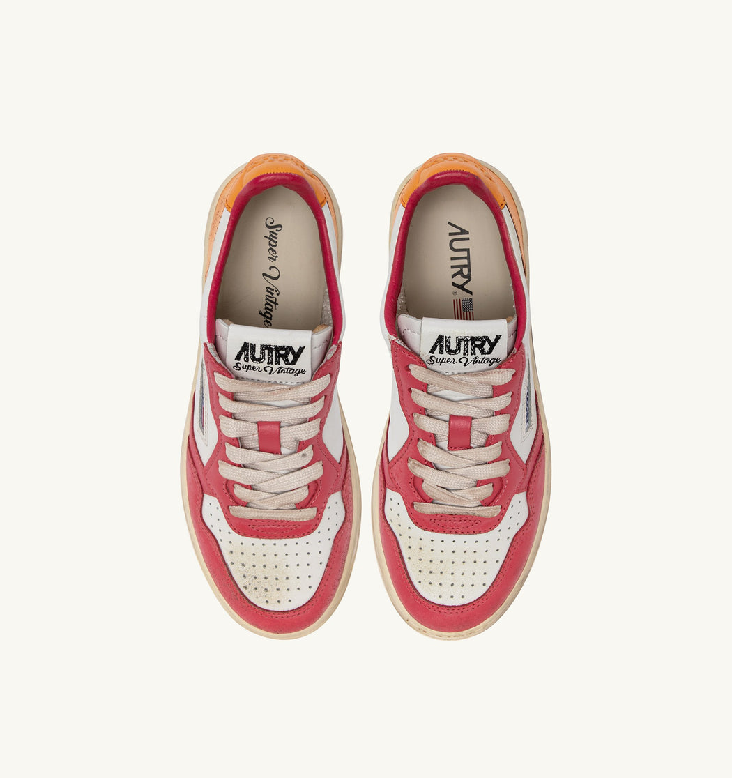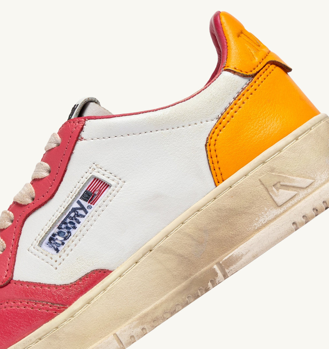 BASKET MEDALIST LOW SUPER VINTAGE EN CUIR BLANC, ROSE ET ORANGE