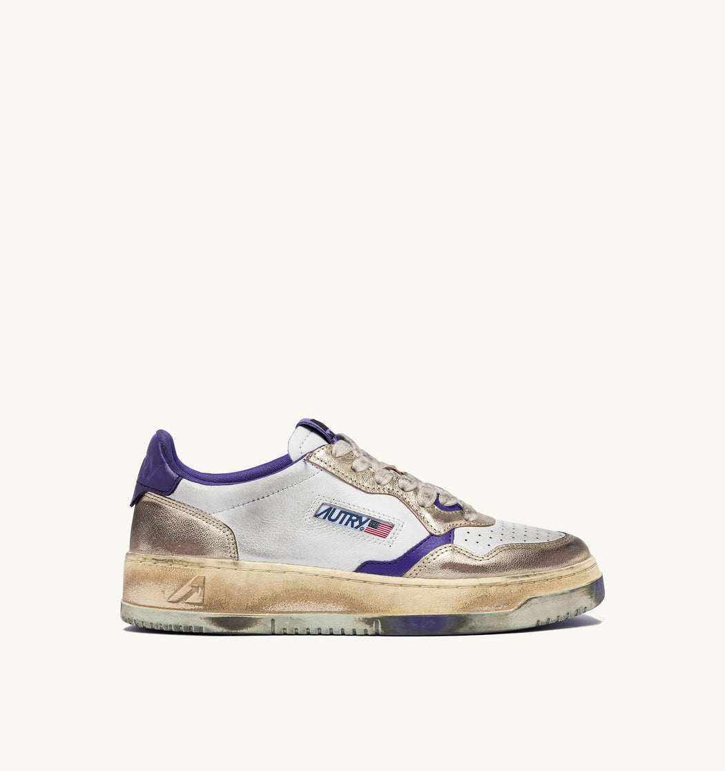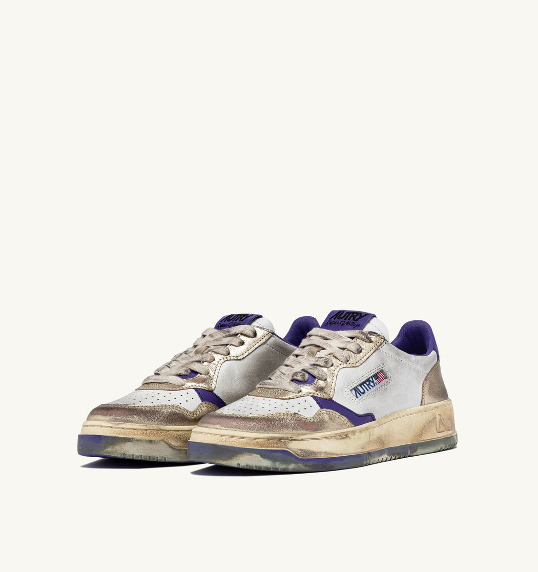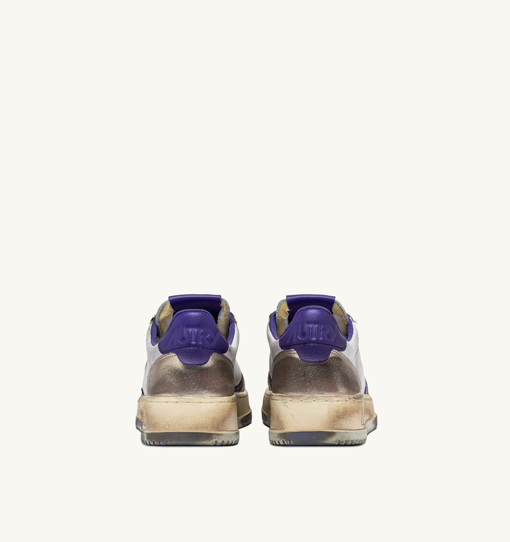 BASKET AUTRY MEDALIST LOW VINTAGE CUIR BLANC, VIOLET ET PLATINE