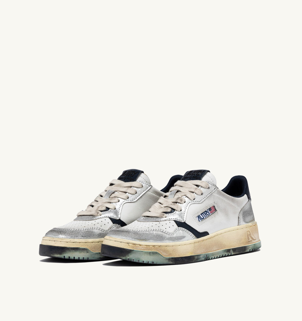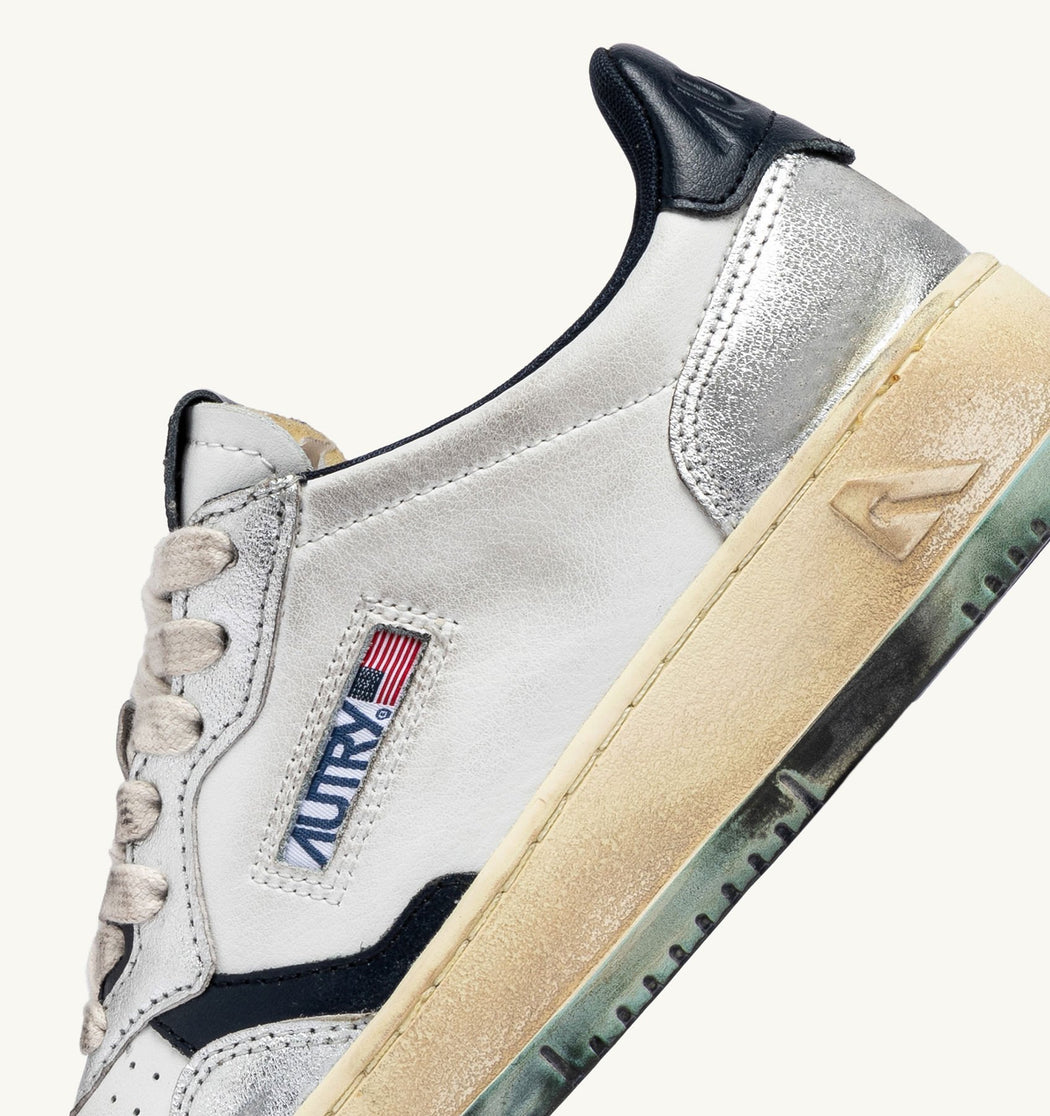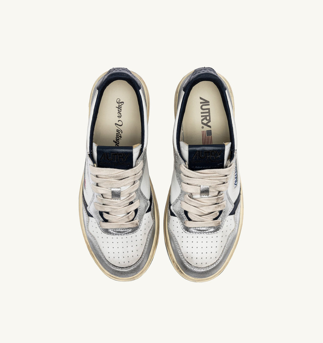 BASKET AUTRY MEDALIST LOW VINTAGE CUIR BLANC, SPACE ET ARGENT