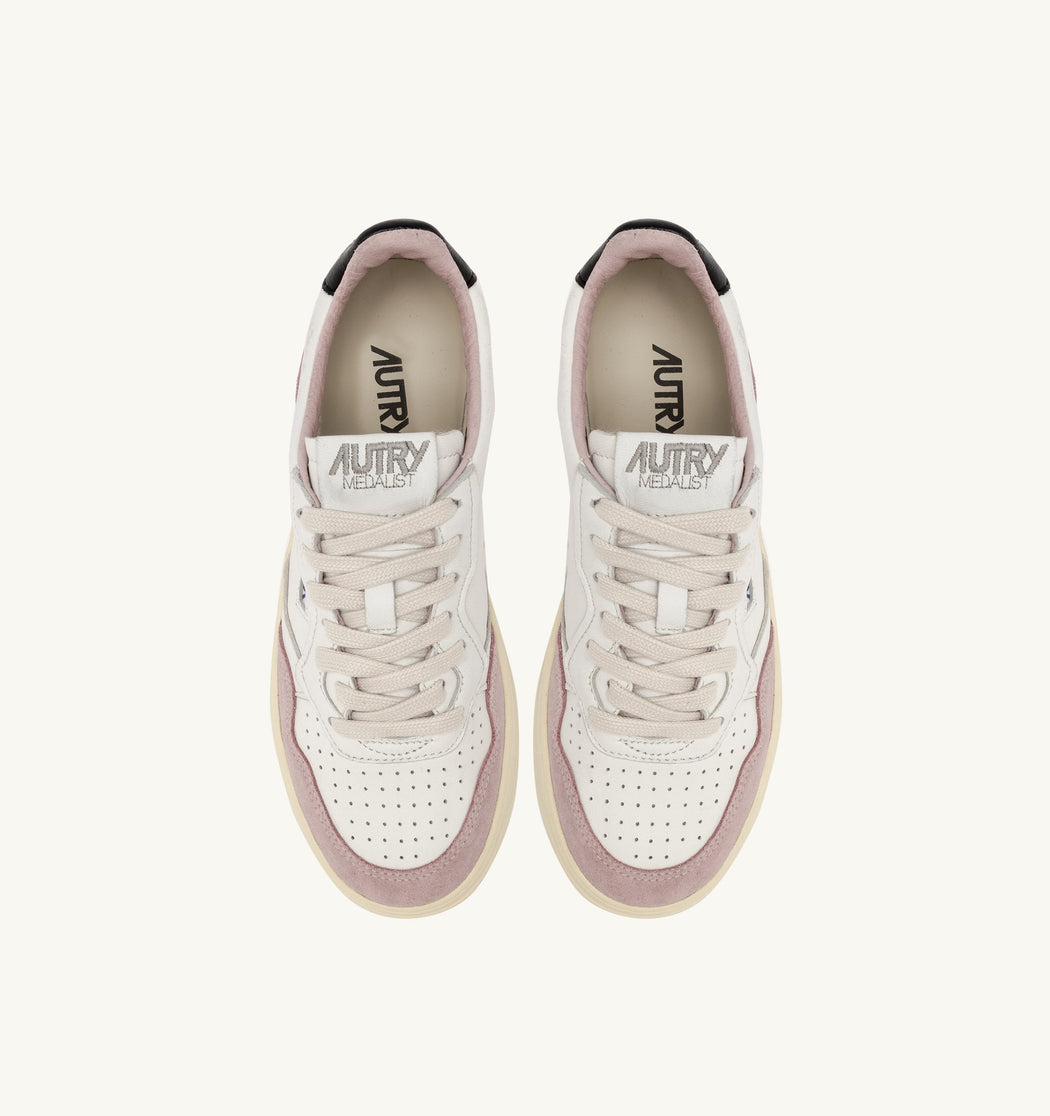 BASKET MEDALIST LOW EN CUIR ET EN DAIM BLANC, POUDRE ET NOIR