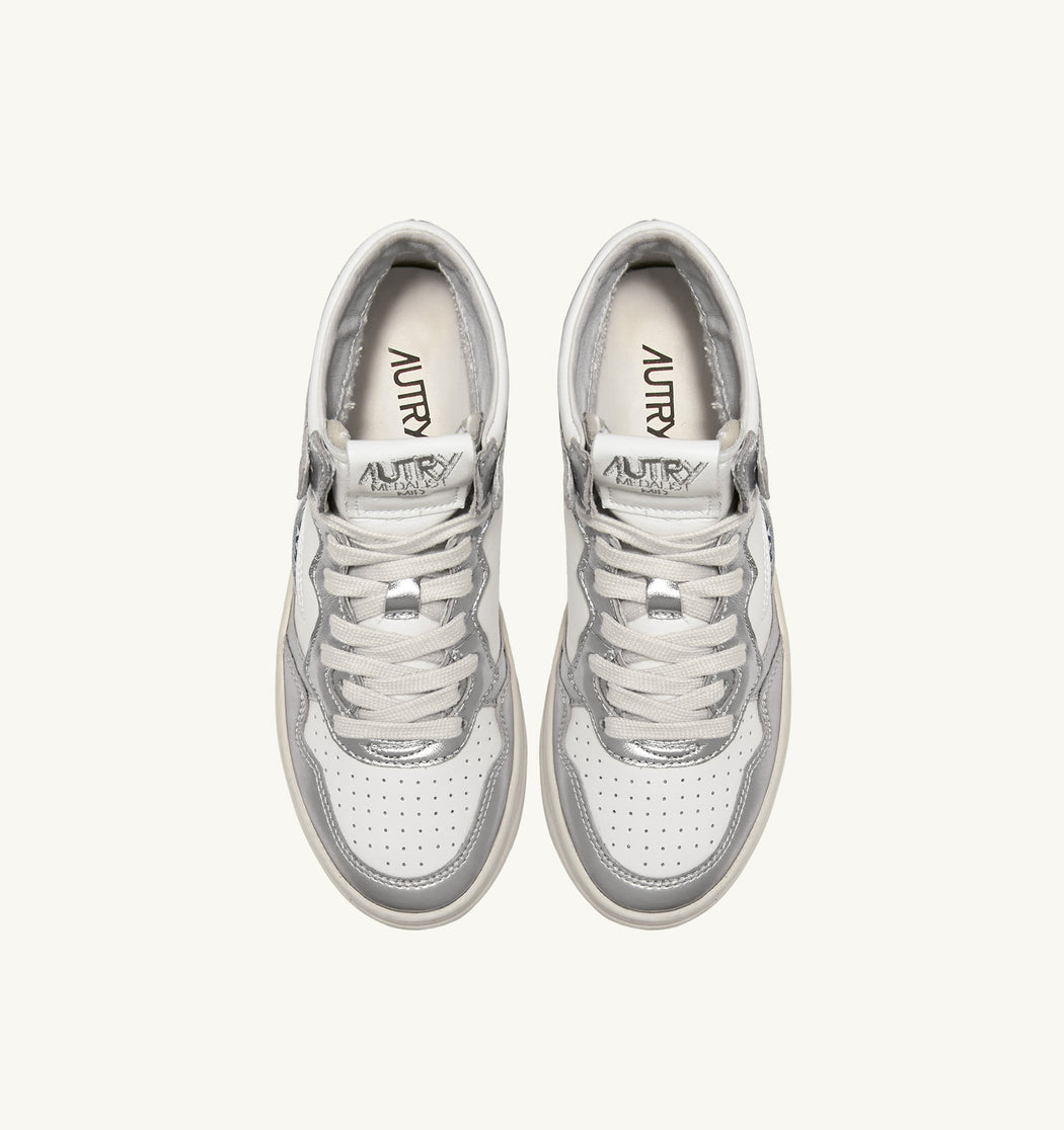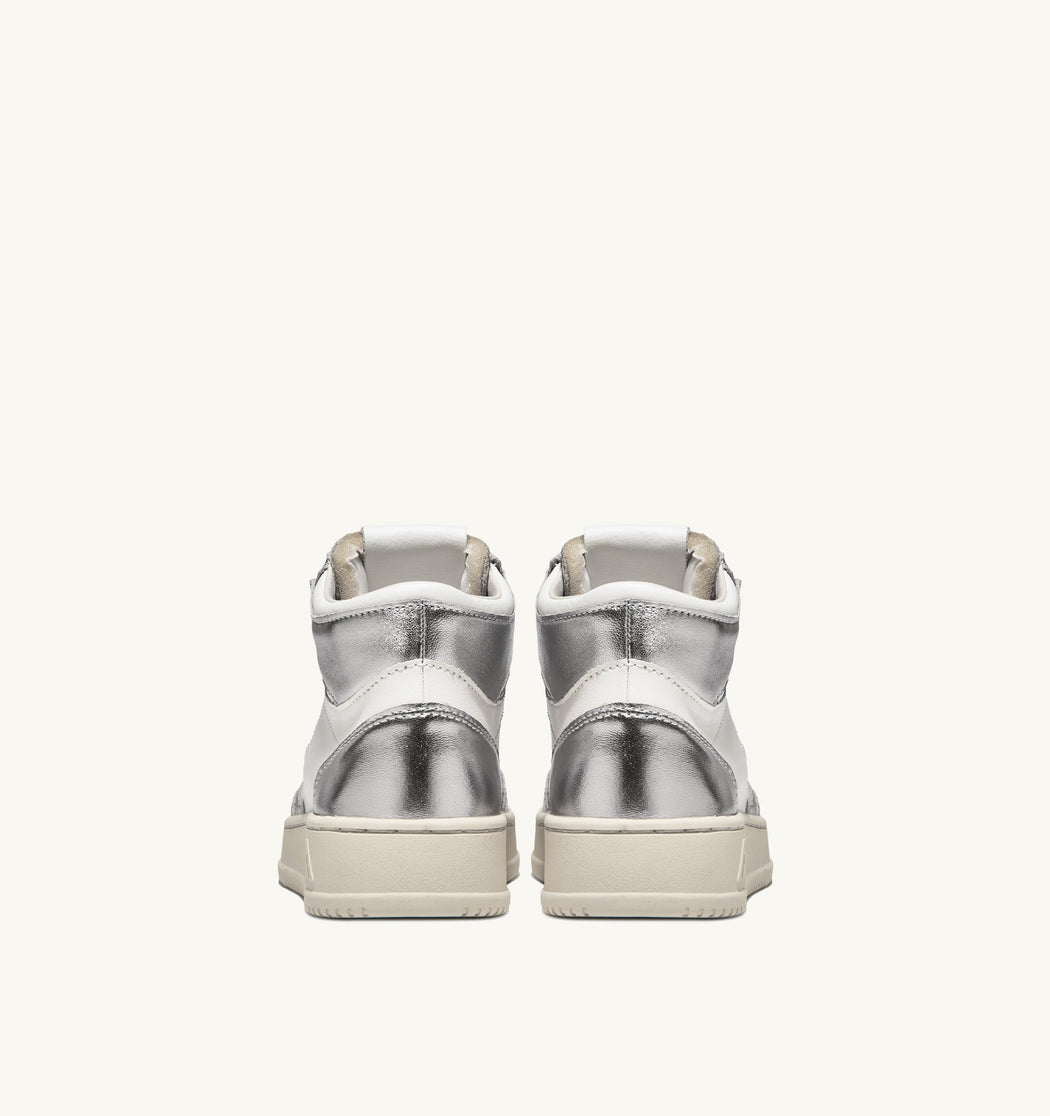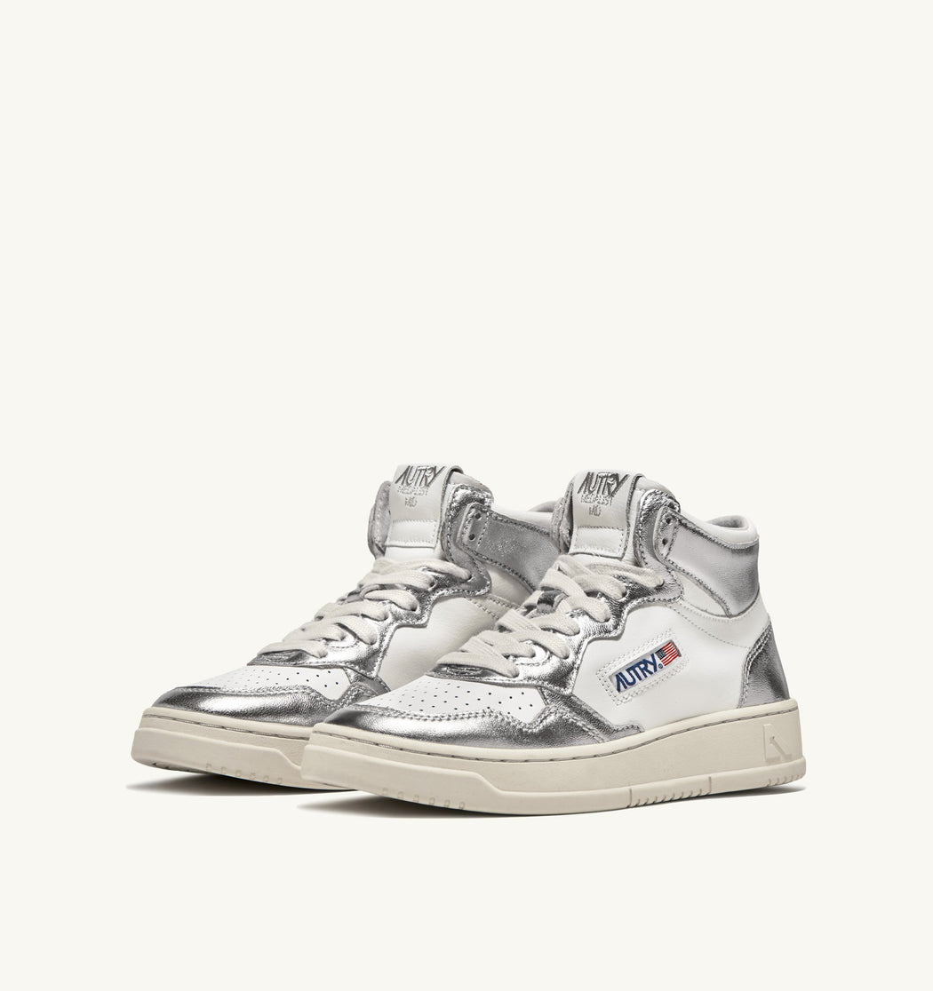 BASKET MEDALIST MID BICOLOR EN CUIR BLANC ET ARGENT METALLISE