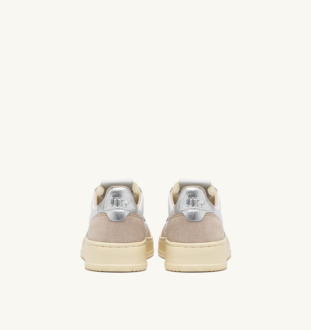 BASKET AUTRY MEDALIST LOW CUIR BLANC ARGENT DAIM