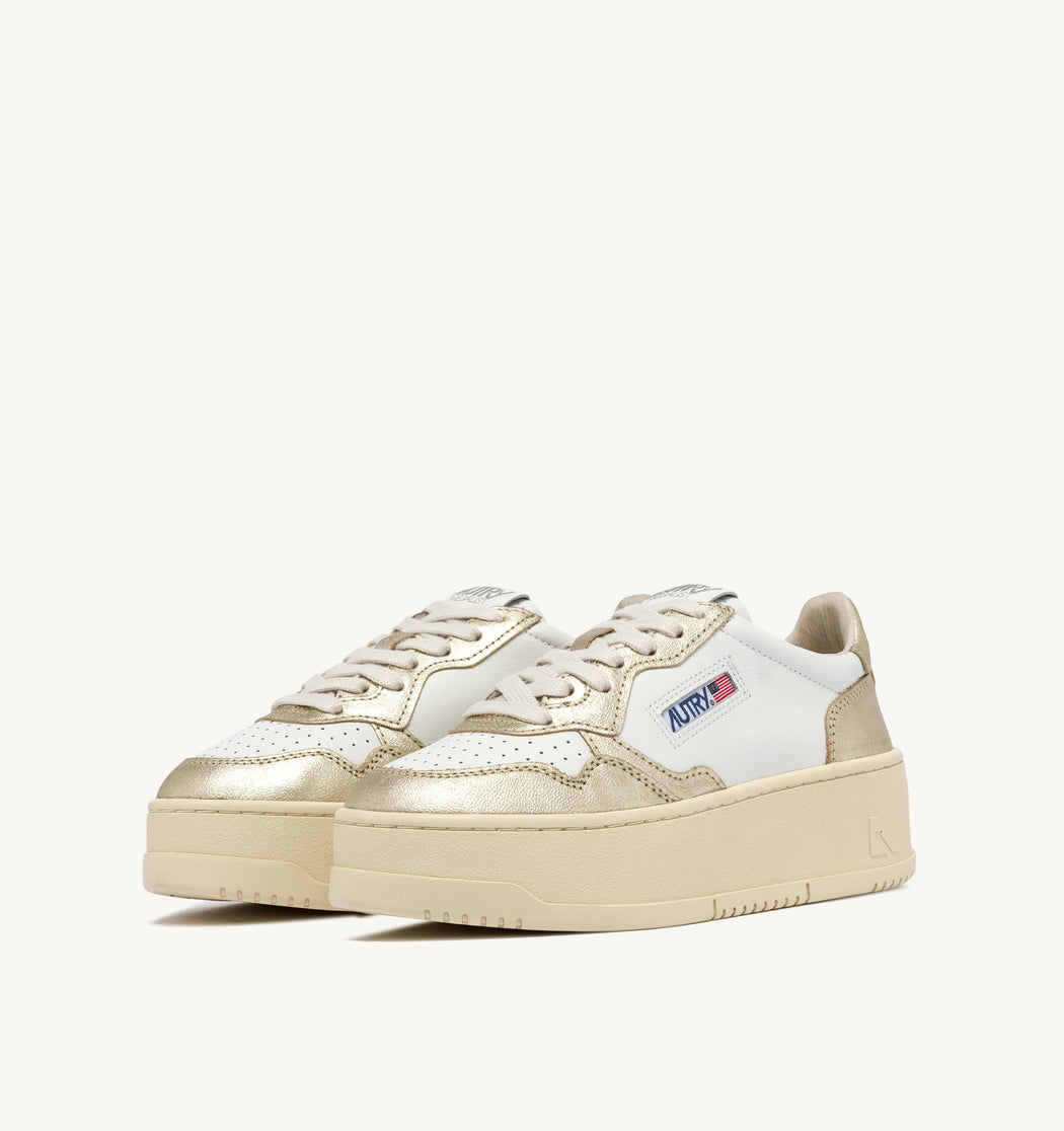 BASKET AUTRY PLATFORM CUIR BLANC ET PLATINE METALLISE