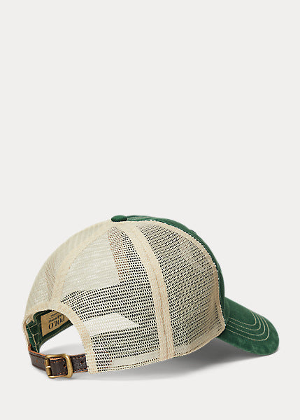 Confectionnée en sergé de coton et dotée de pans en filet aéré et d'une lanière en cuir à boucle derrière, cette casquette est rehaussée d'un patch avec le logo Polo distinctif devant.