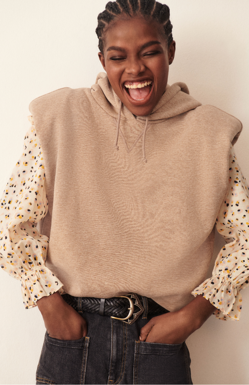La blouse BLAKE ba&sh se veut romantique et féminine. Ce chemisier, à col tunisien et manches 3/4 élastiquées aux poignets, s'habille d'un plastron orné de découpes et volants. Il est confectionné dans une matière agréable au porté, ornée d'un motif à mi-chemin entre pelage de panthère et taches de couleurs faites au pinceau, graphique et lumineux. Une blouse facile à vivre, aux inspirations rétro : à associer avec un jean loose pour un look bohème très seventies.