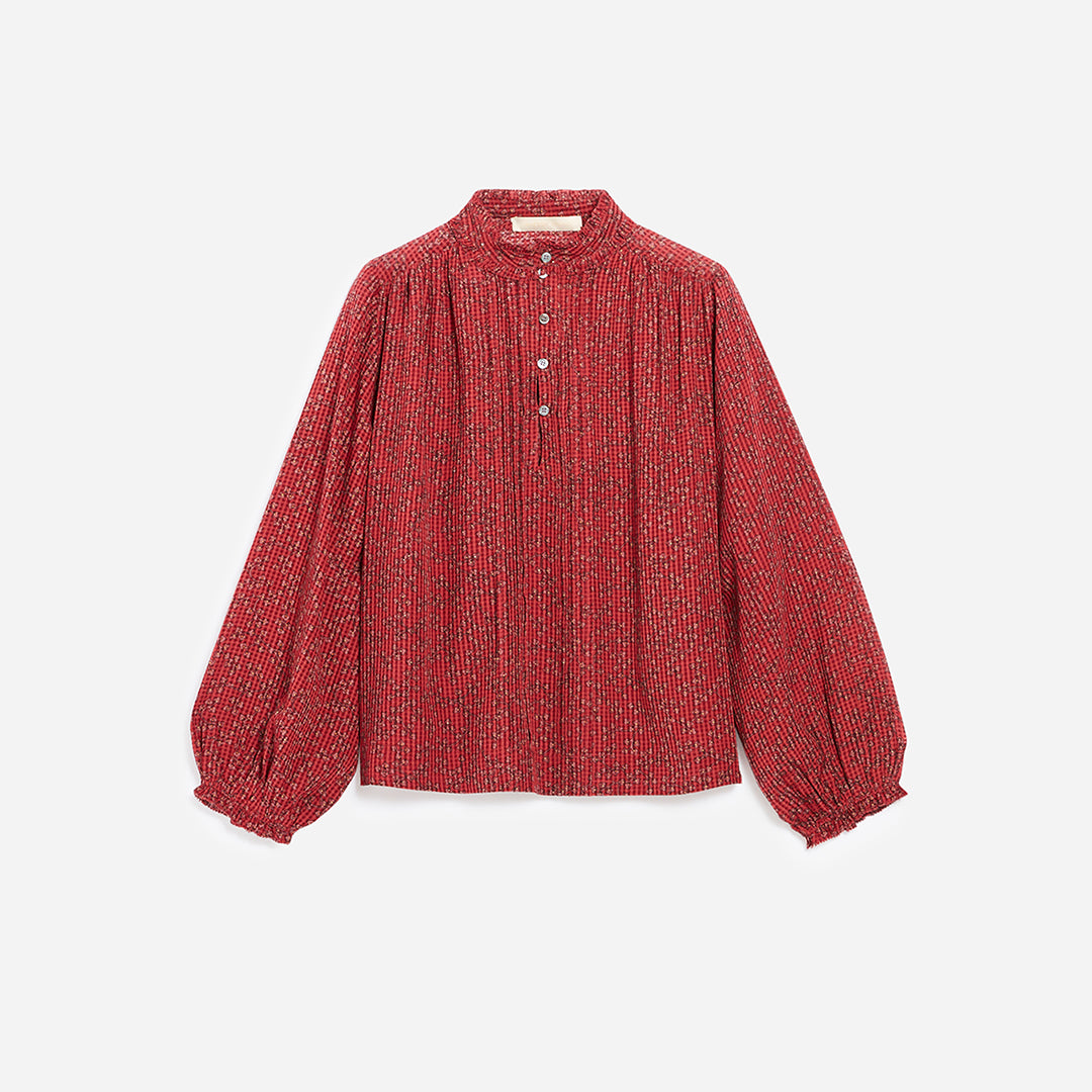 La blouse légère Prado se distingue par son volume et sa légèreté. Confectionnée dans un mélange de viscose aéré et ornée d'un imprimé floral, cette pièce à manches bouffantes présente des micro-volants au col et aux poignets ainsi qu'un empiècement plissé sur le devant. Simplement élégante.