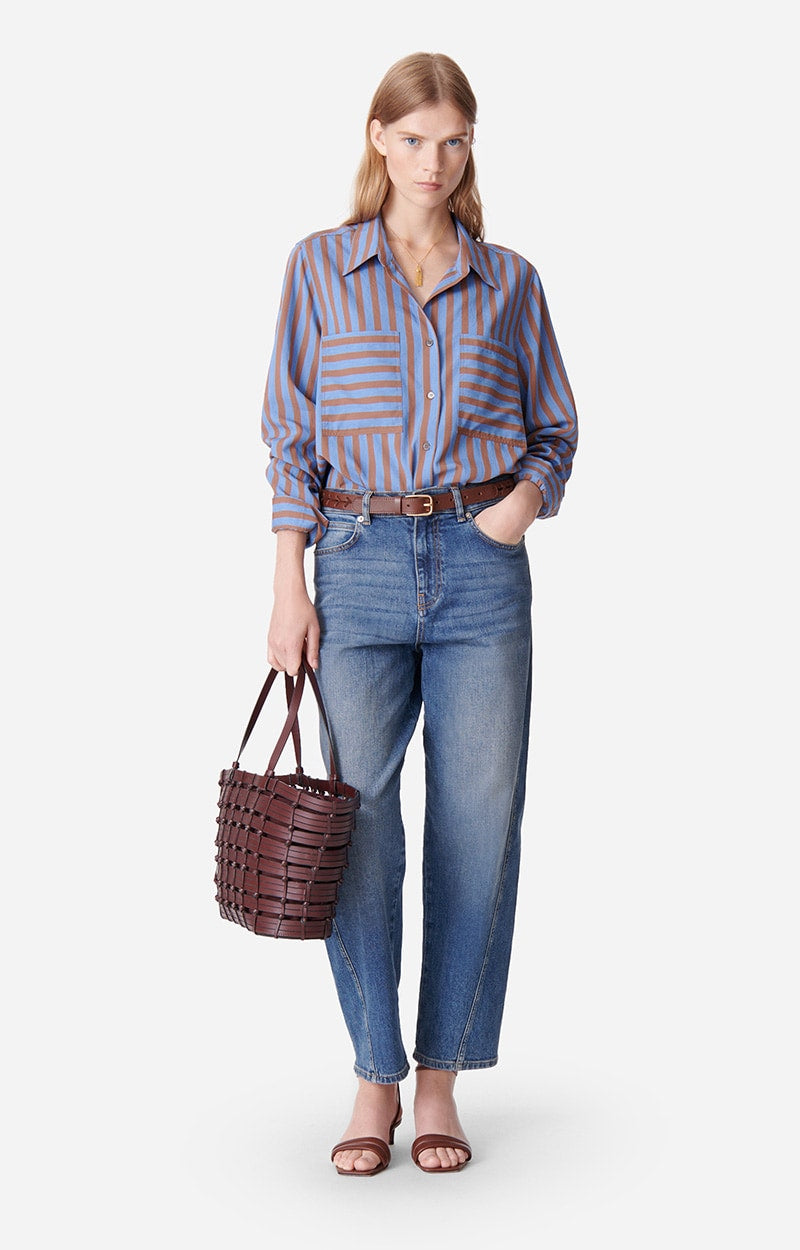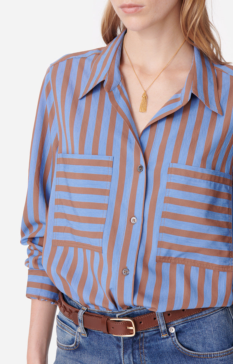 La chemise Dann réinvente la chemise classique pour homme dans une coupe plus ample et fluide avec un jeu de rayures. Confectionnée en viscose légère et fluide, sa légèreté apporte une fluidité naturelle à la coupe. Portez-la avec un jean simple pour une tenue décontractée ou avec un pantalon tailleur pour une tenue de bureau de caractère.