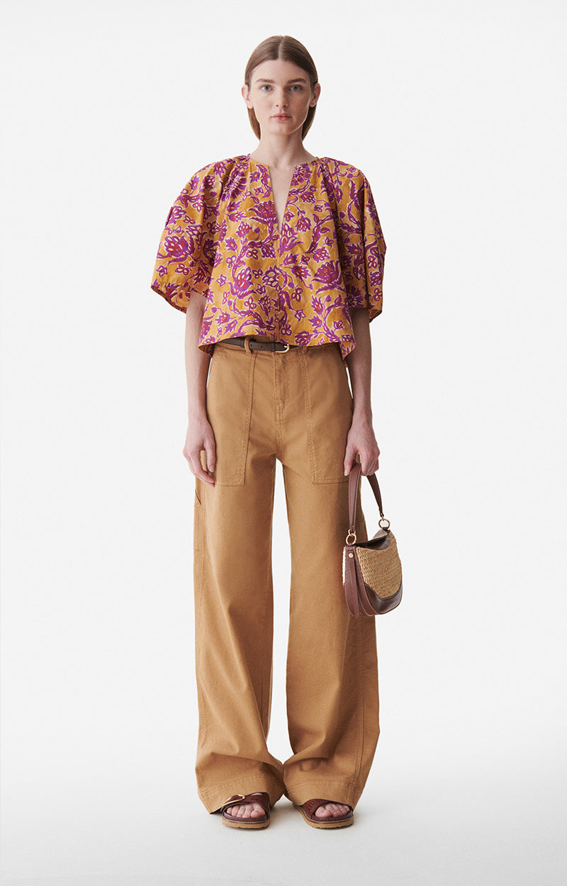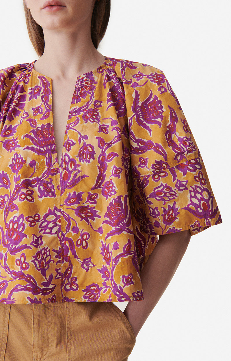 Cool et pleine de caractère, la blouse Brook présente de larges manches arrondies, un décolleté tunisien et une coupe raccourcie et évasée. Ce haut en popeline de coton rayé confortable et facile à enfiler est la clé d'un look maîtrisé en un clin d'œil. Cette saison, il se décline dans un imprimé floral en bloc.