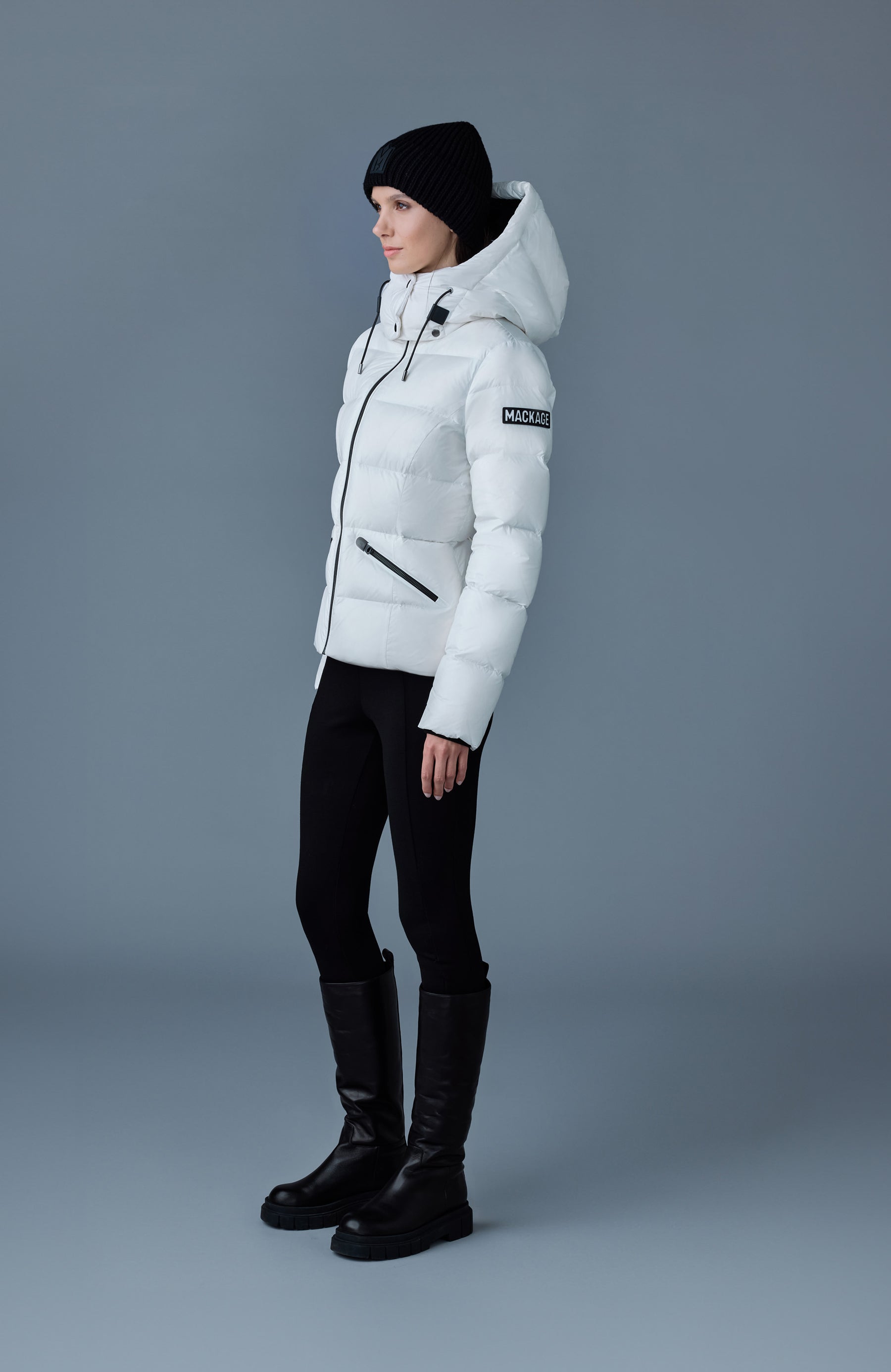 MADALYN est une veste en duvet nano recyclé pour femme avec une capuche amovible à visière anti-tempête. Légère et conçue pour une silhouette ajustée classique, la coque matelassée à canaux brillants offre une chaleur parfaite au fil des saisons. Les poignets en tricot côtelé et les poches zippées isolées apportent du confort. Les cache-tirettes 3D et notre logo signature ajoutent des détails déterminants.