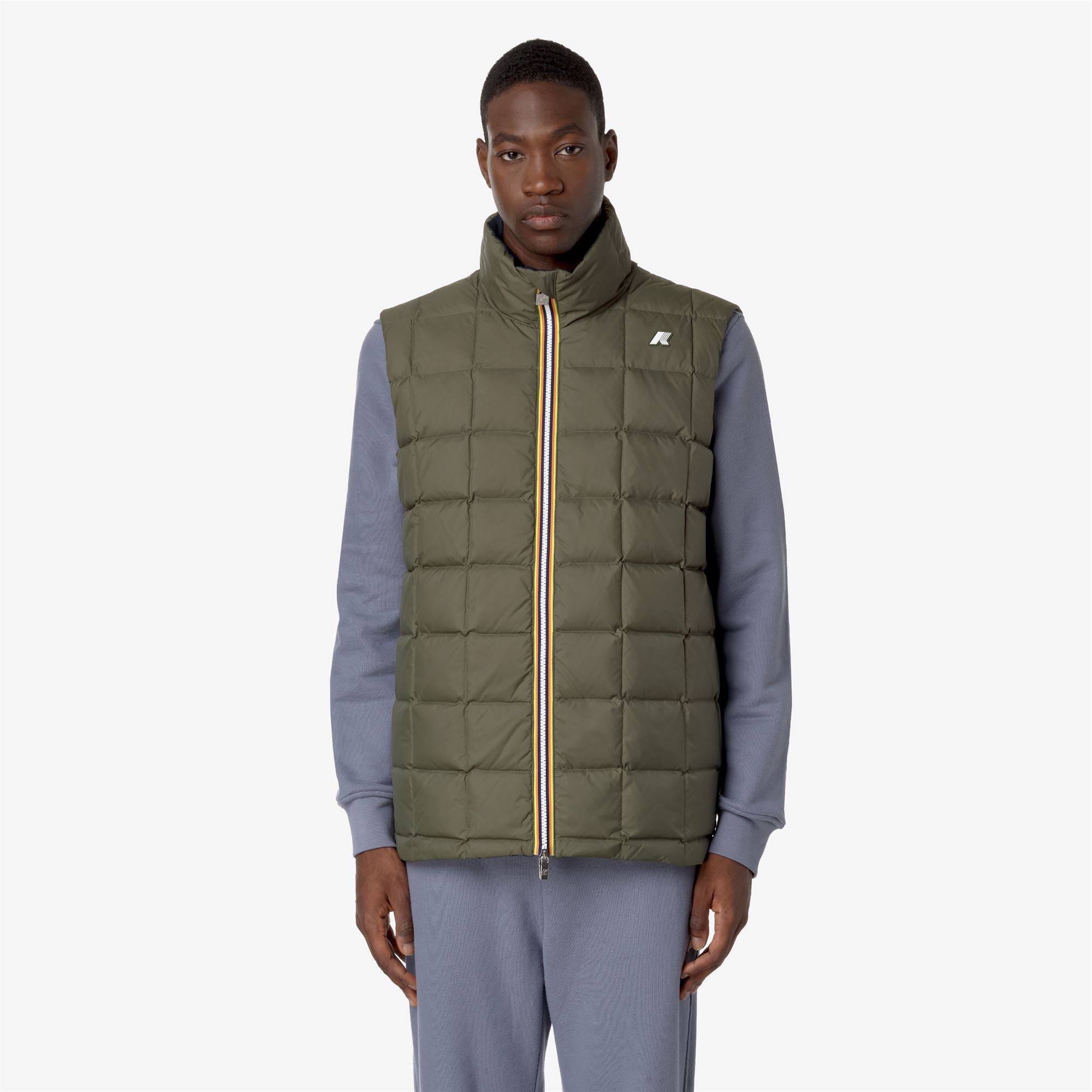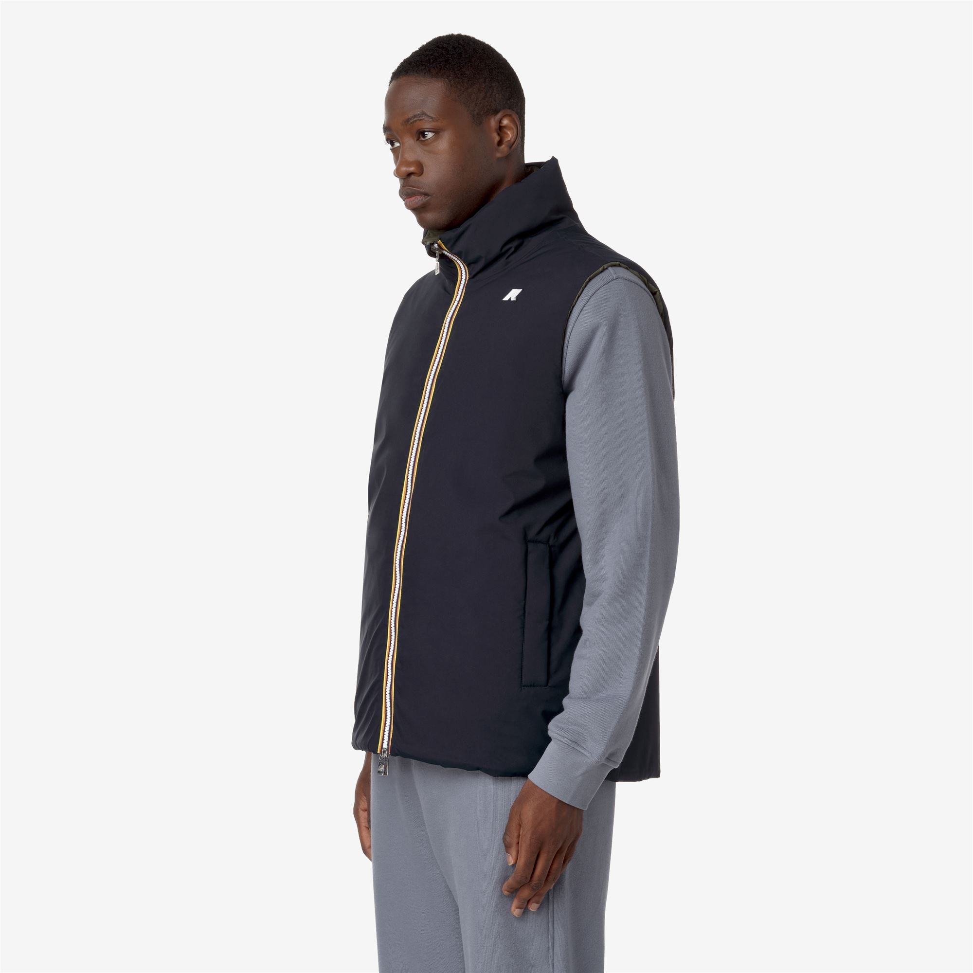 Valen est un gilet matelassé court pour homme, rembourré en duvet d'oie Molina et conçu pour protéger des conditions climatiques les plus difficiles. Le modèle se distingue par son design fonctionnel et réversible, qui multiplie les occasions d'utilisation, avec un côté en tissu technique lisse et l'autre côté en nylon matelassé de couleur contrastante. Les poches des deux côtés, la fermeture zippée et le rabat coupe-vent sont des détails fonctionnels qui offrent une protection supplémentaire pendant les activités de plein air.