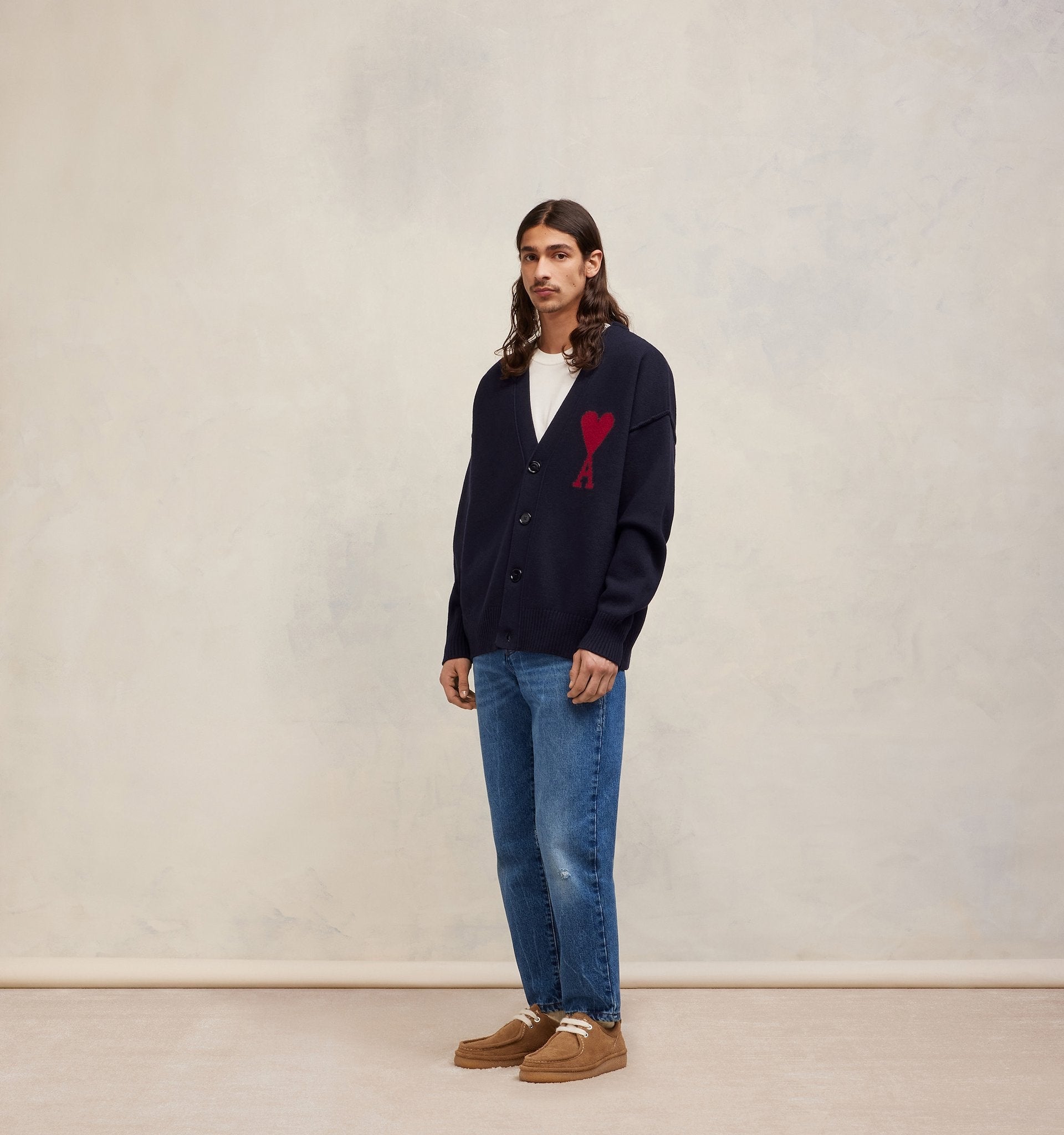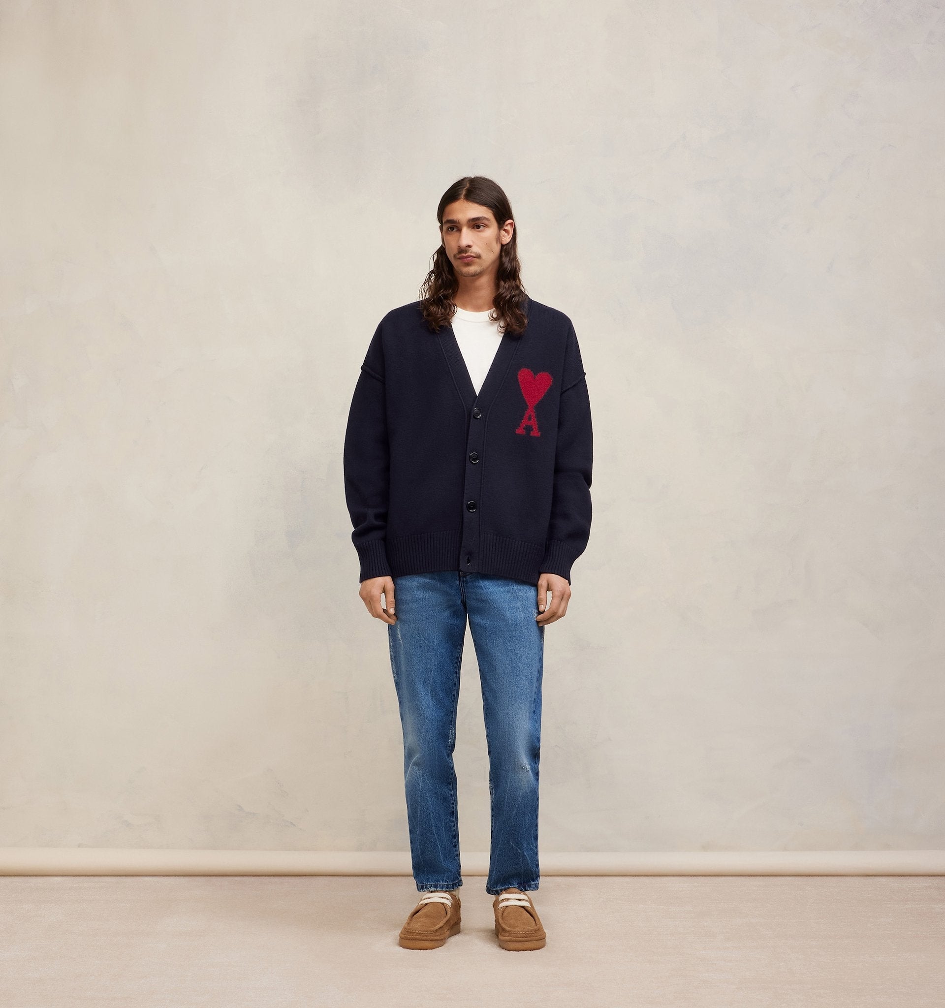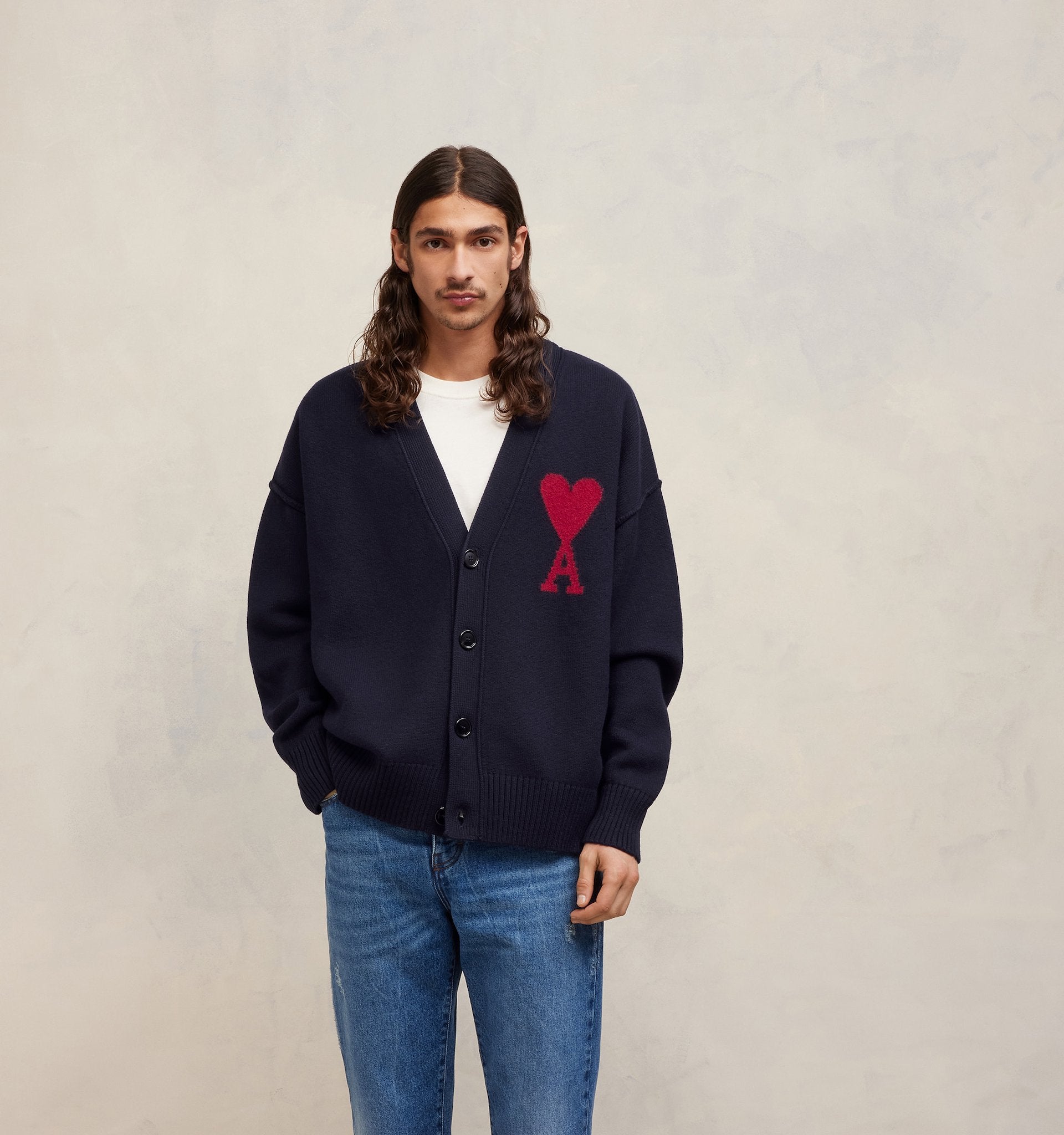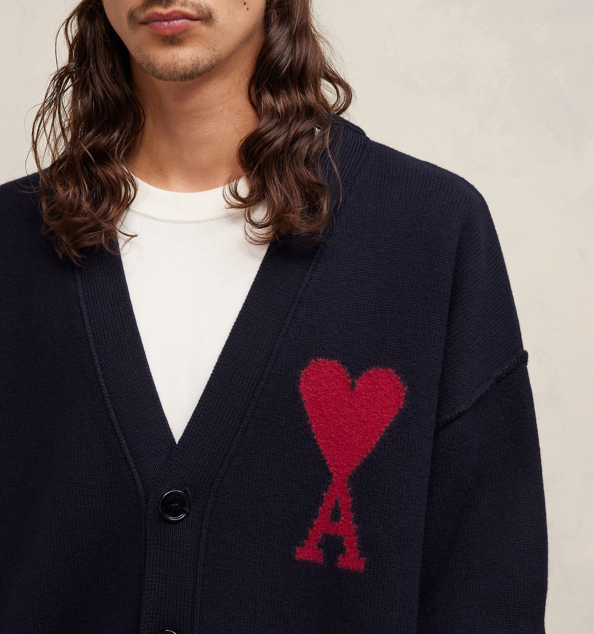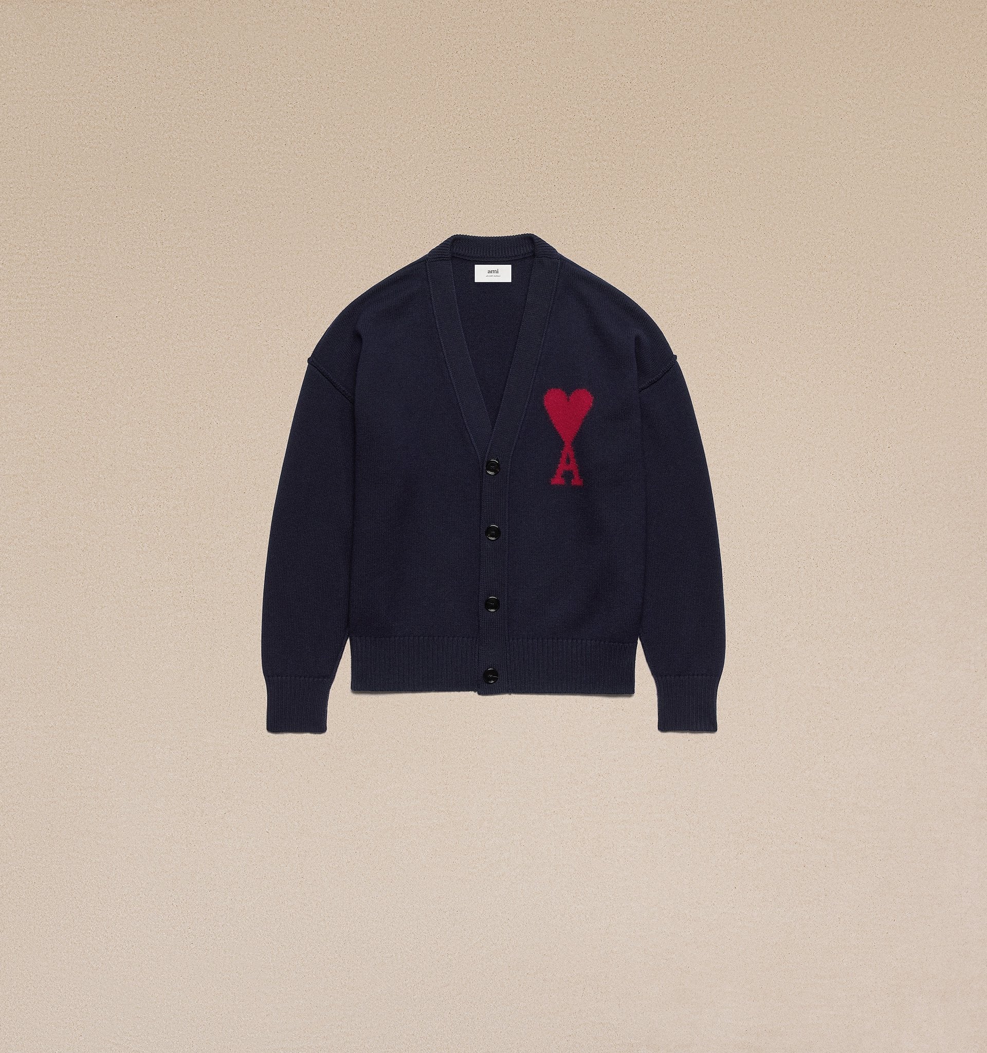 - Logo Ami de Cœur rouge tricoté en intarsia inversé