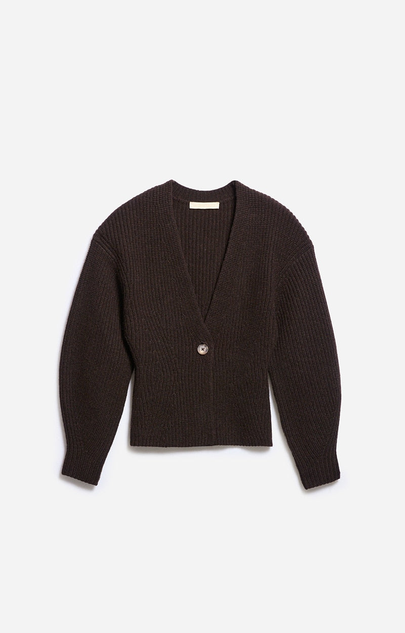 Le gilet Deloris en laine et yak présente une coupe très oversize et des manches larges, arrondies et tombantes, créant une silhouette à la fois moderne et décontractée. Il est doté d'une fermeture à boutons en corne pour marquer votre taille. Vous pouvez même le porter à même la peau pour une touche sexy. C'est une alternative idéale à un costume ou une veste de mi-saison pour une touche plus confortable.