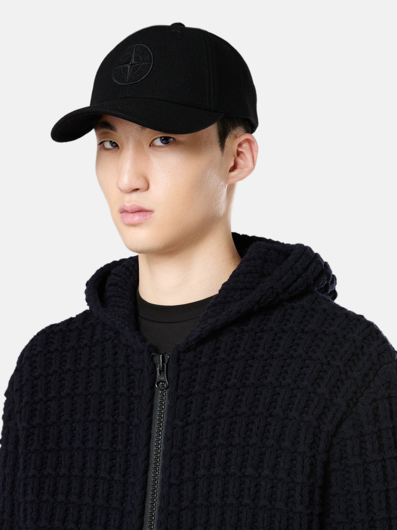 Logo Rose des Vents Stone Island brodé en relief sur le devant. Un œillet sur chaque pan. Réglable à l’arrière avec une lanière et un clip.