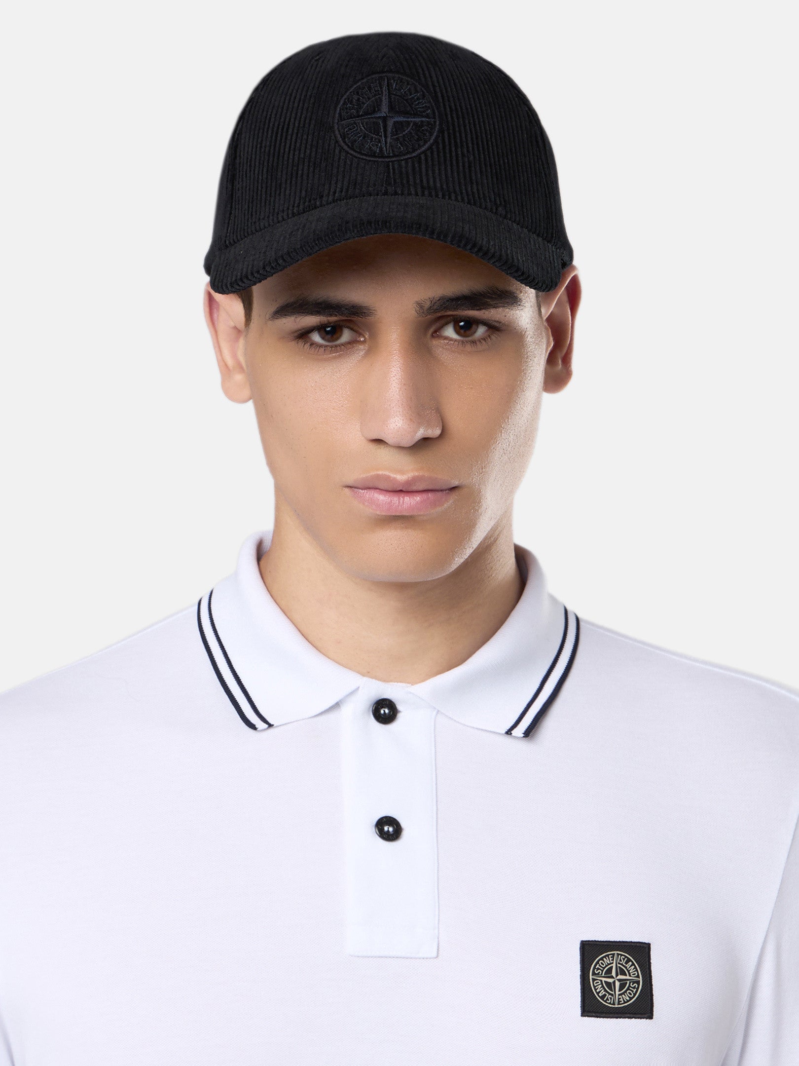 Logo Rose des Vents Stone Island brodé en relief sur le devant. Un œillet sur chaque pan. Réglable à l’arrière avec une lanière et un clip.