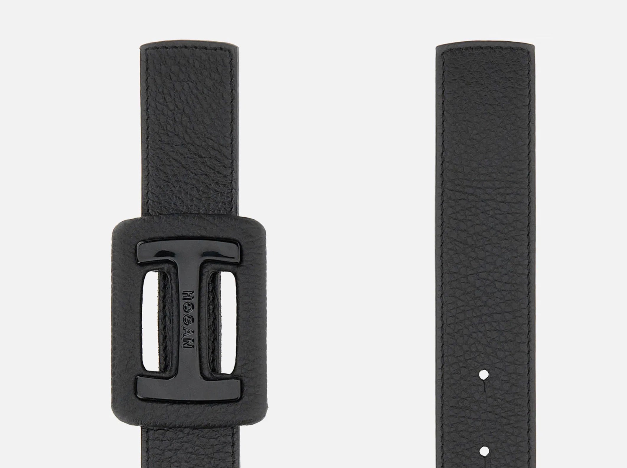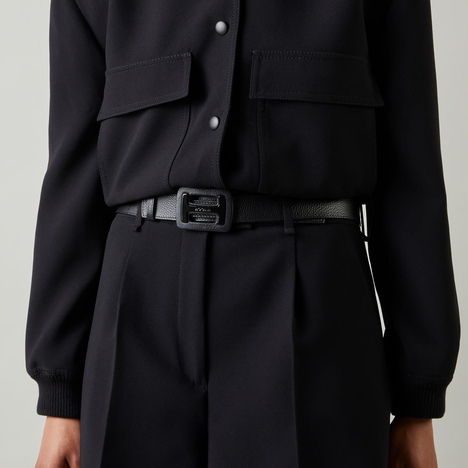 Ceinture en cuir effet martelé, avec maxi boucle H iconique. Un complément pour un look polyvalent et féminin.