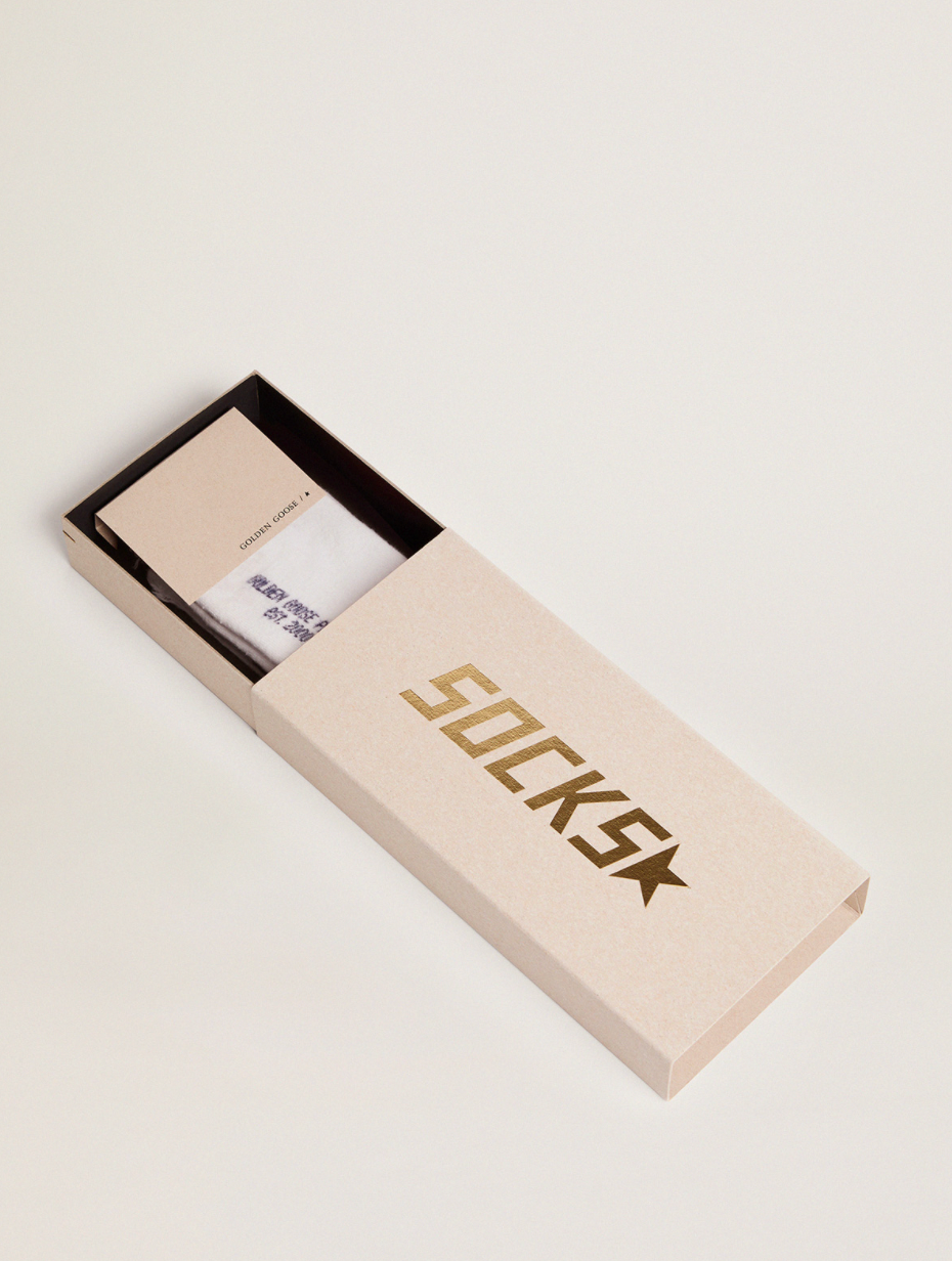 chaussette GOLDEN GOOSE Chaussettes en coton à l’effet usé, rayures bleu marine et logo