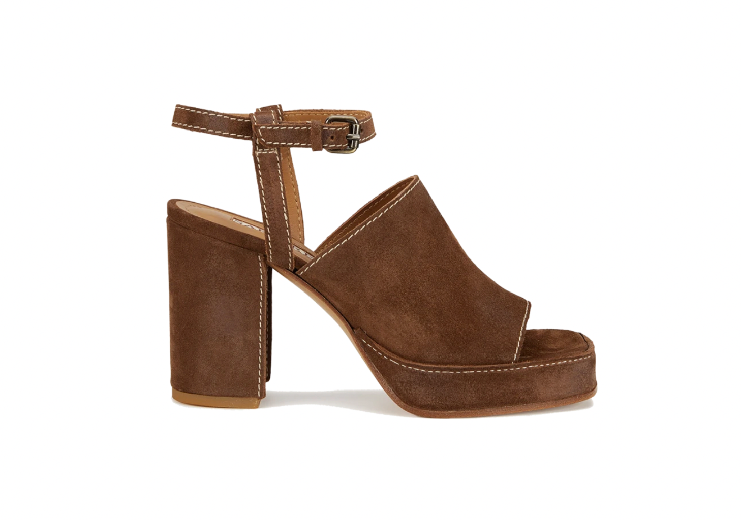 Sandales plates-formes qui rappellent les modèles populaires des années 70's. Elles sont réalisées en veau velours très souple. Le talon bottier ainsi que le plateau avant assurent un confort optimal. Semelle cuir.