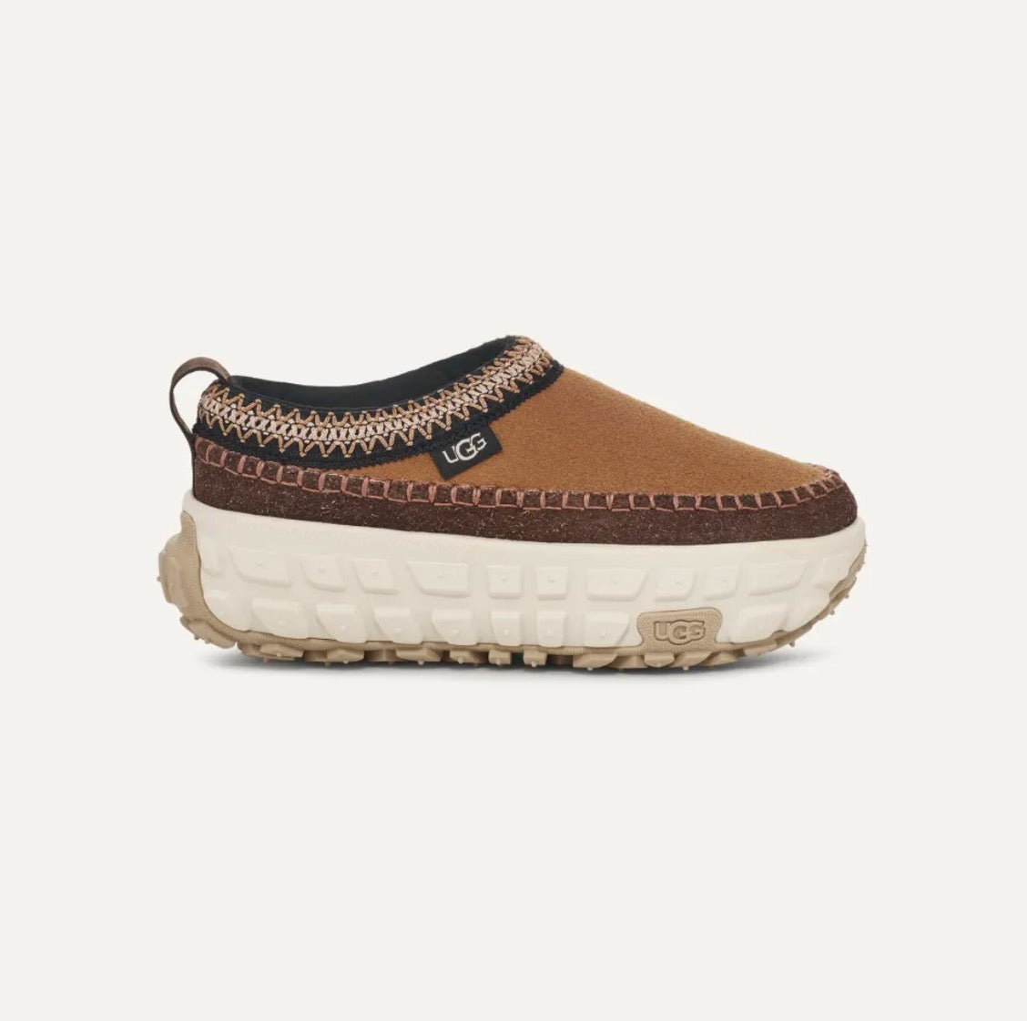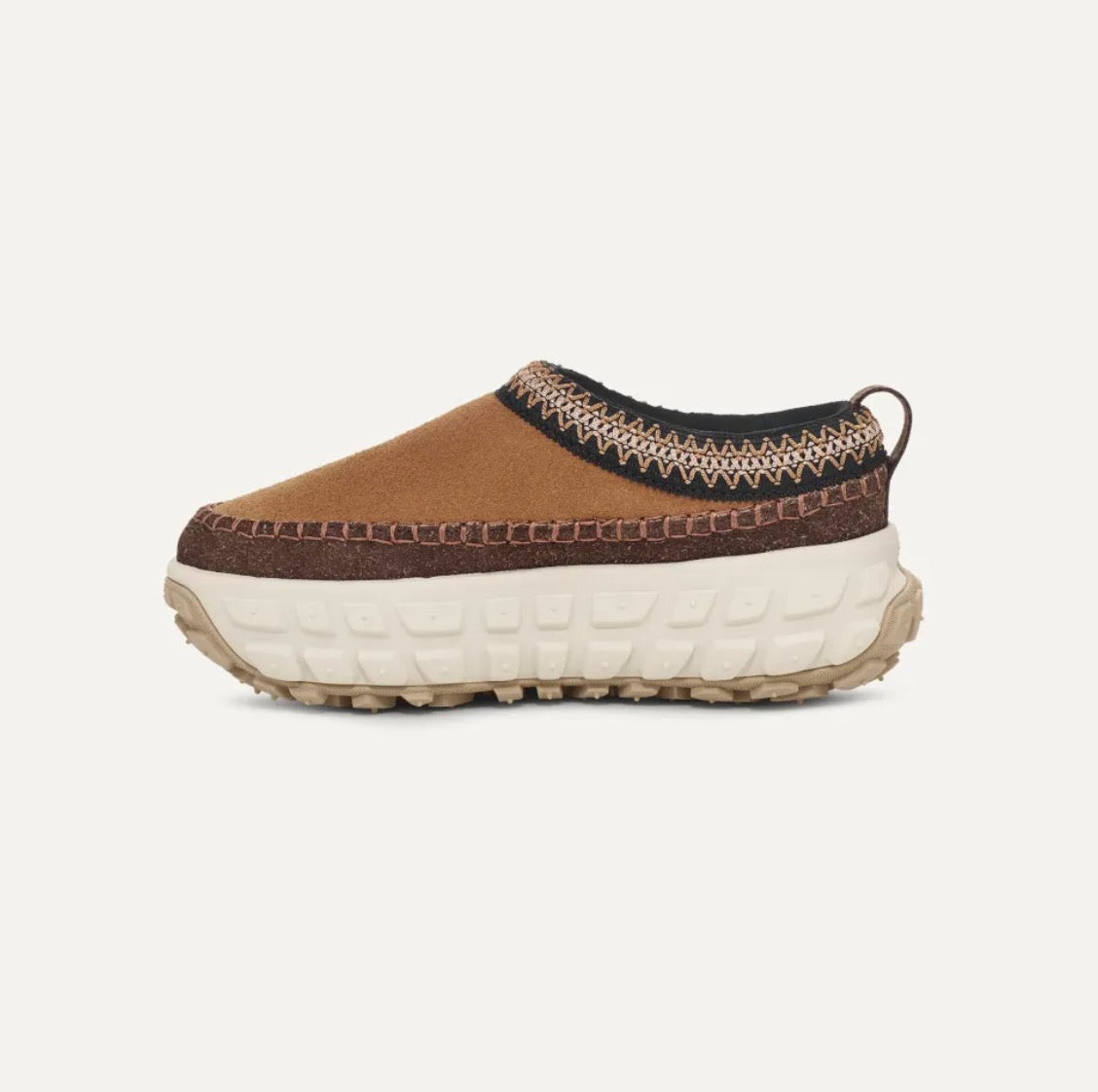 Un modèle avec du caractère, c’est indéniable. Alliant style audacieux et confort, le modèle Venture Daze revisite notre chausson Tasman classique. Le Venture Daze repose sur une semelle extérieure adhérente avec de grands crampons qui ne craindront aucun sol. Lors d’un festival ou d’une soirée autour d’un feu de camp, le Venture Daze vous suivra dans toutes vos aventures. Il allie une tige en daim, notre UGGbraid™ classique, des surpiqûres emblématiques, ainsi qu’une assise plantaire légère et une semelle intermédiaire en EVA issu de la canne à sucre.