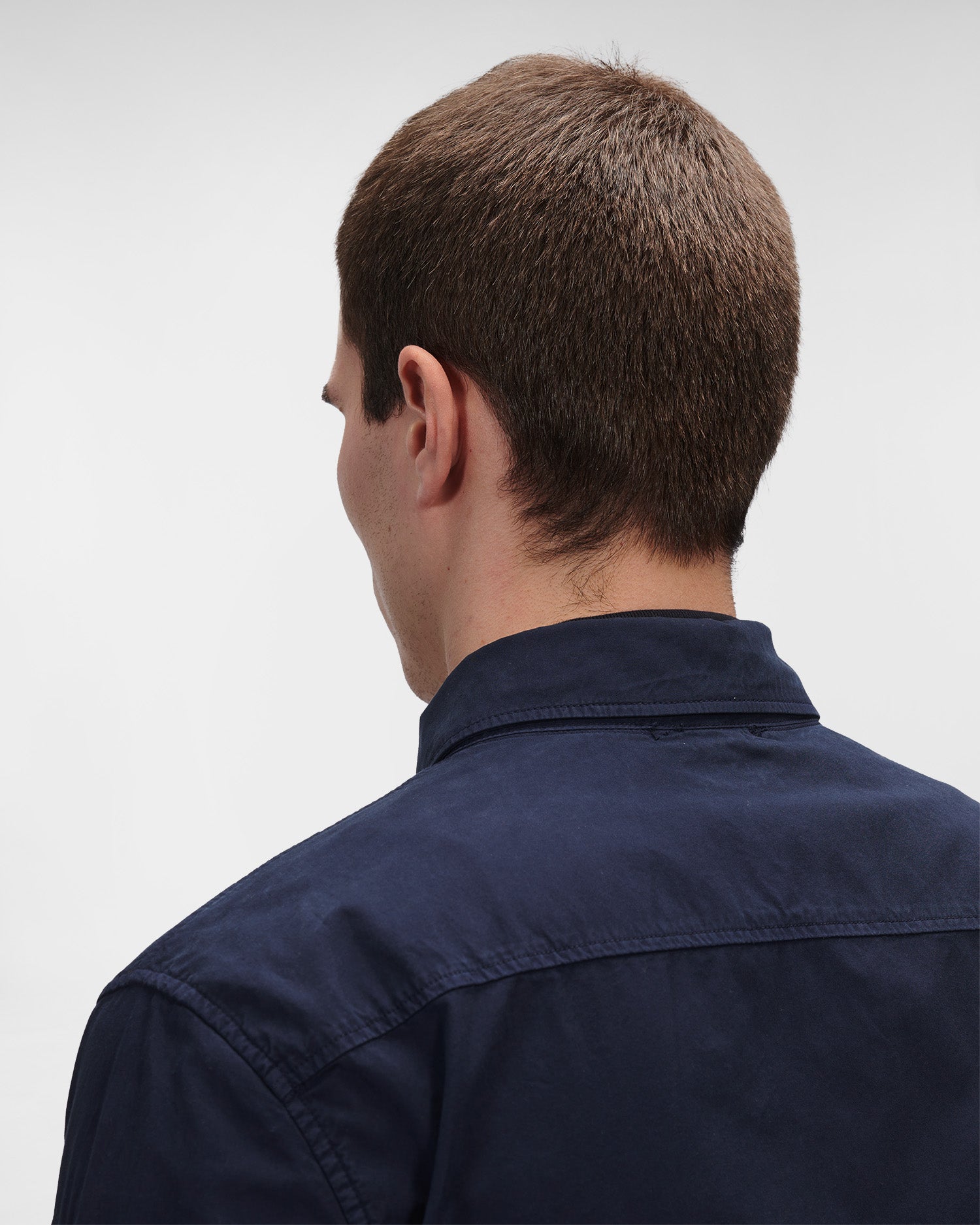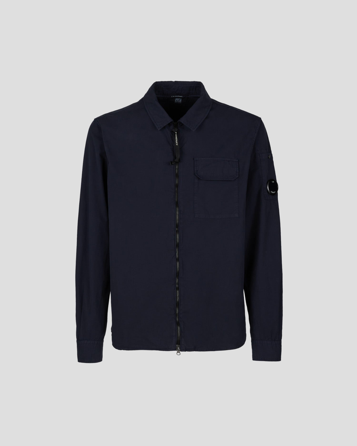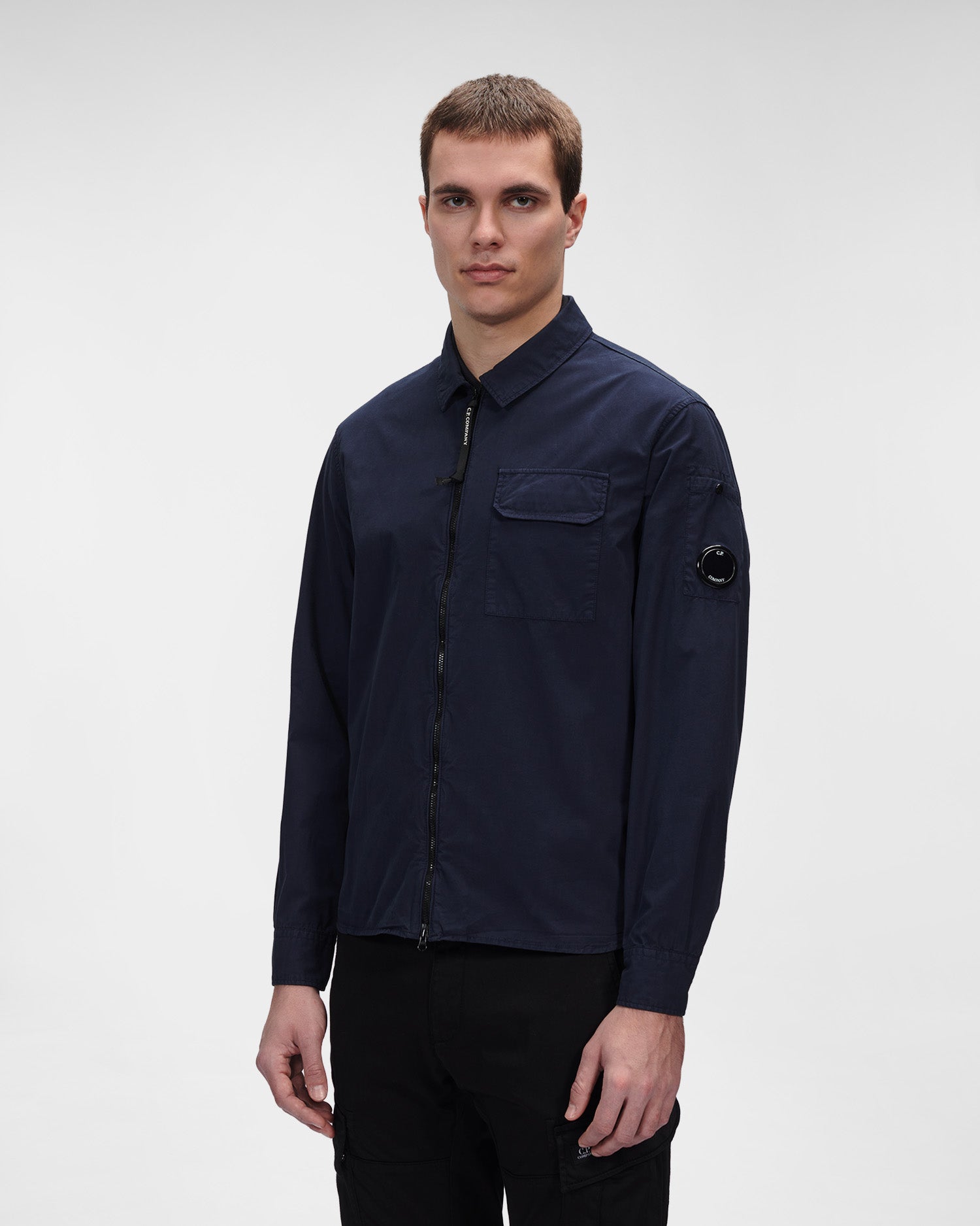Chemise au look utilitaire avec col classique, fermeture zippée sur toute la longueur et poche poitrine. Le vêtement est doté de poignets ajustables et d'une poche sur la manche ornée du détail en forme de verre de lunette C.P. Company. Modèle confectionné dans une gabardine de coton alliant robustesse et respirabilité, puis teint en pièce pour plus de profondeur et d'intensité dans les couleurs.