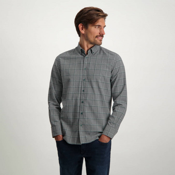 Cette chemise de coupe régulière avec un motif à carreaux exclusif est fabriquée en coton biologique avec un label GOTS. Les fils de cette chemise Yarn Dyed sont teintés dans la couleur souhaitée avant qu'elle ne soit fabriquée. Le col boutonné et les boutons assortis complètent le design.