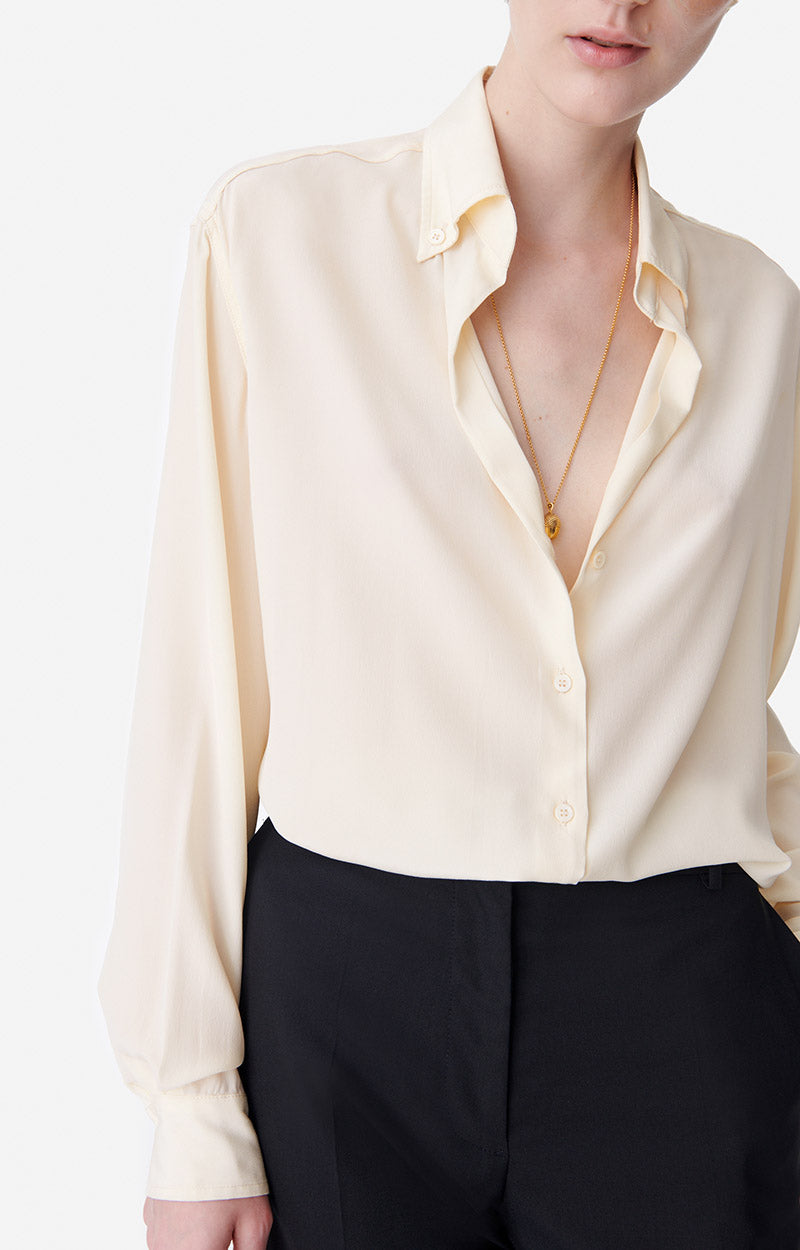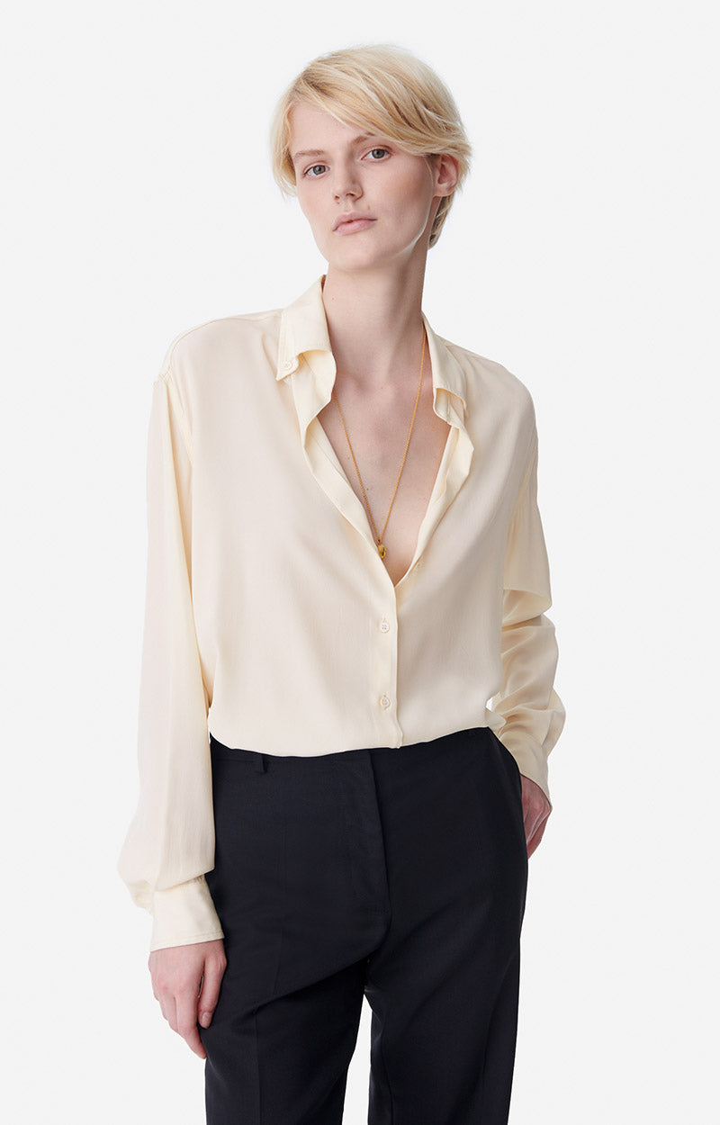 La chemise Druyat, icône de Vanessa Bruno, est un indispensable de la garde-robe féminine, une pièce qui s'associe à tous les looks avec élégance et simplicité. Ici, la chemise Druyat est en soie. Avec ses manches longues et son col chemise, ce chemisier est un choix raffiné. Associez-la à un jean ou à une jupe, au gré de vos envies.