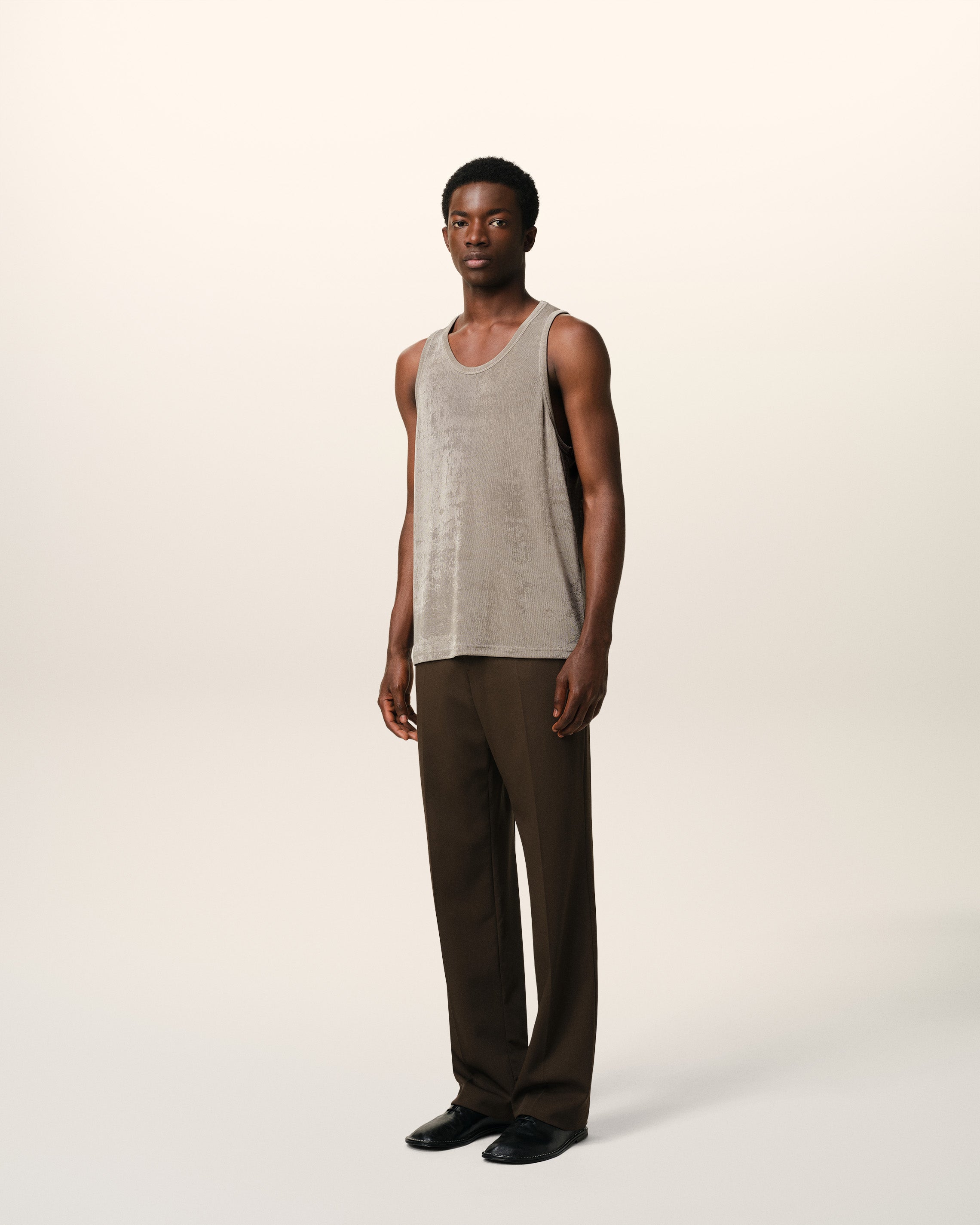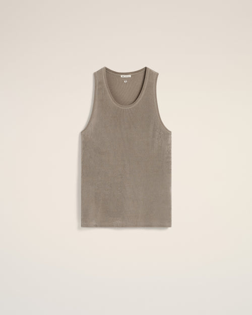 Débardeur en jersey rib brillant léger.Longueur milieu dos 65 cm (taille M)Signature au dos avec oeillet gravé "ami paris" argentFabriqué au Portugal (avec amour)