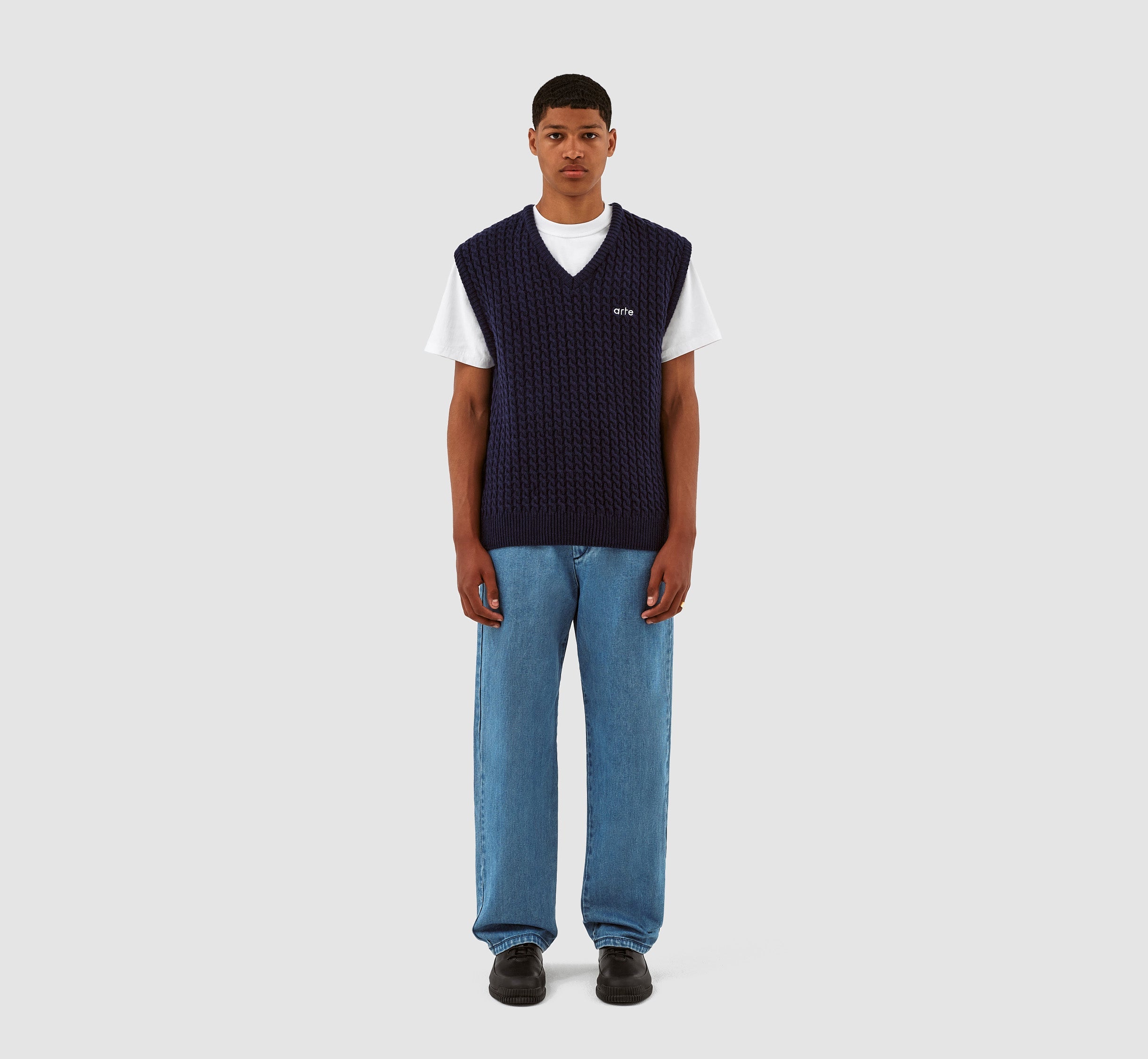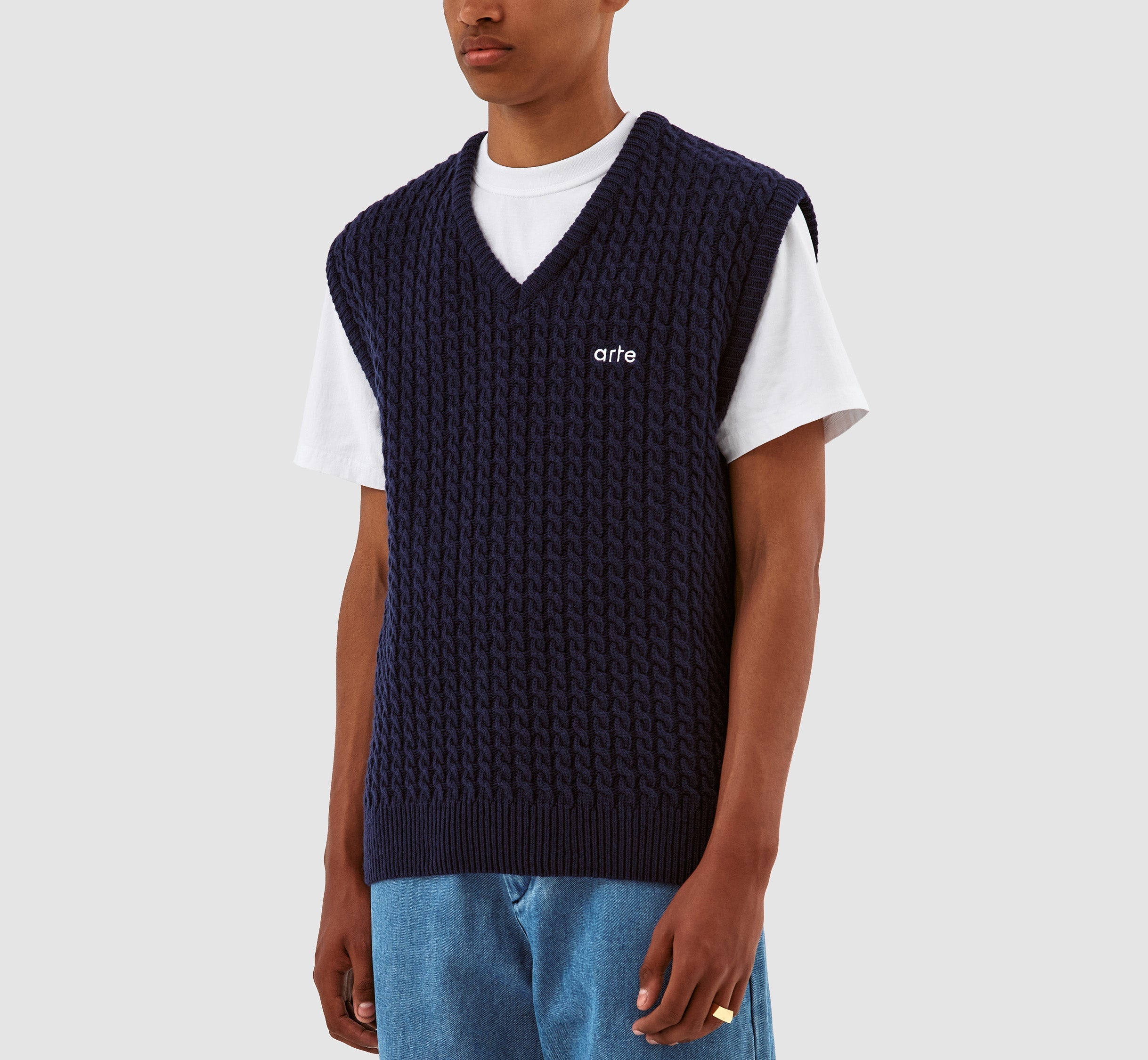 Fabriqué en coton de qualité supérieure et coupé dans une coupe décontractée, le Tricot Karl Alivio Le gilet est une pièce épaisse et polyvalente qui se décline en orange et en bleu marine. Ce gilet côtelé, semblable à une tresse, se présente avec un col en V légèrement cintré. Retrouvez le logo brodé d'Arte en blanc sur la partie supérieure gauche de la poitrine.