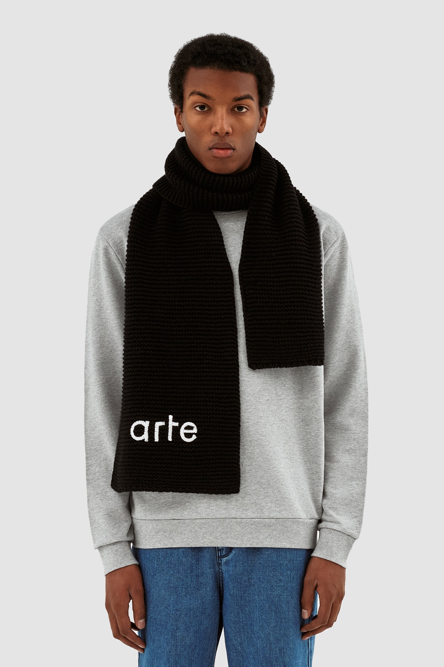 Conçue pour vous tenir chaud pendant les saisons les plus froides, l'écharpe en tricot Aaron est une écharpe en tricot de laine noire à deux faces. Fabriquée à partir d'un mélange de laine de première qualité, l'écharpe se décline dans un coloris noir polyvalent. Le logo Arte est brodé en blanc sur l'une des faces.