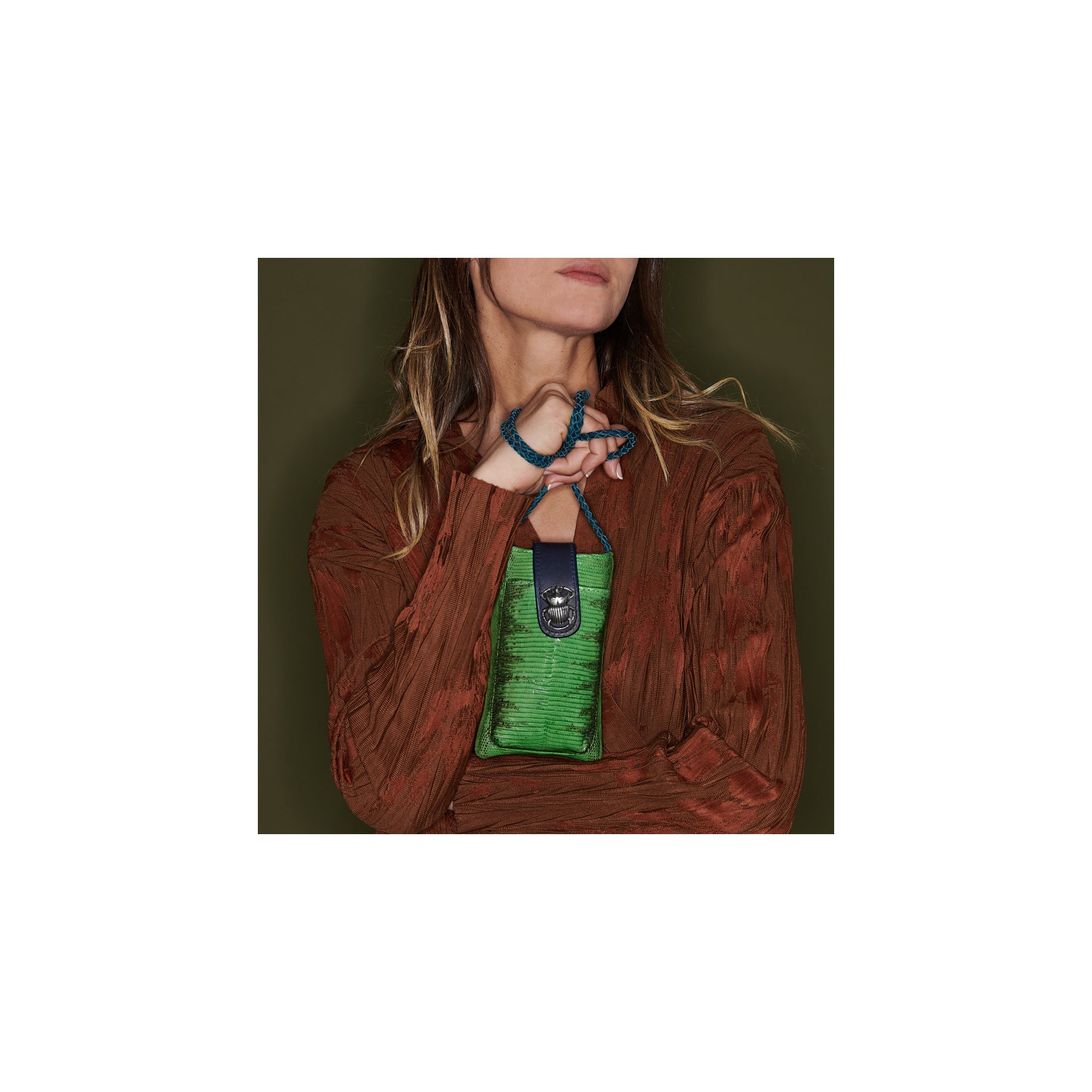 Cette pochette conçue afin de transporter votre téléphone est réalisée à la main. Le double Marcus est doté de deux compartiments. La poche principale vous permettra d’accueillir votre smartphone et la poche avant vos lunettes. Ces deux poches se ferment à l’aide d’un rabat aimanté, orné d’un scarabée. À l’arrière, 3 fentes vous permettront d’y ranger vos différentes cartes.