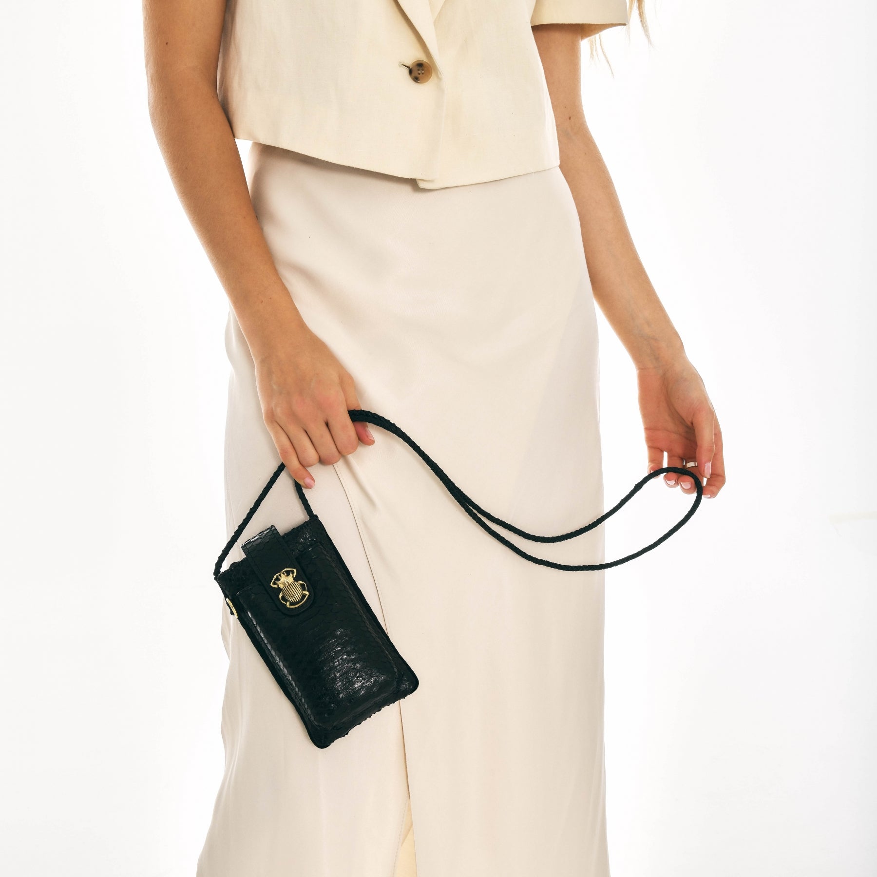 Cette pochette conçue afin de transporter votre téléphone est réalisée à la main. Le double Marcus est doté de deux compartiments. La poche principale vous permettra d’accueillir votre smartphone et la poche avant vos lunettes. Ces deux poches se ferment à l’aide d’un rabat aimanté, orné d’un scarabée doré. À l’arrière, 3 fentes vous permettront d’y ranger vos différentes cartes.