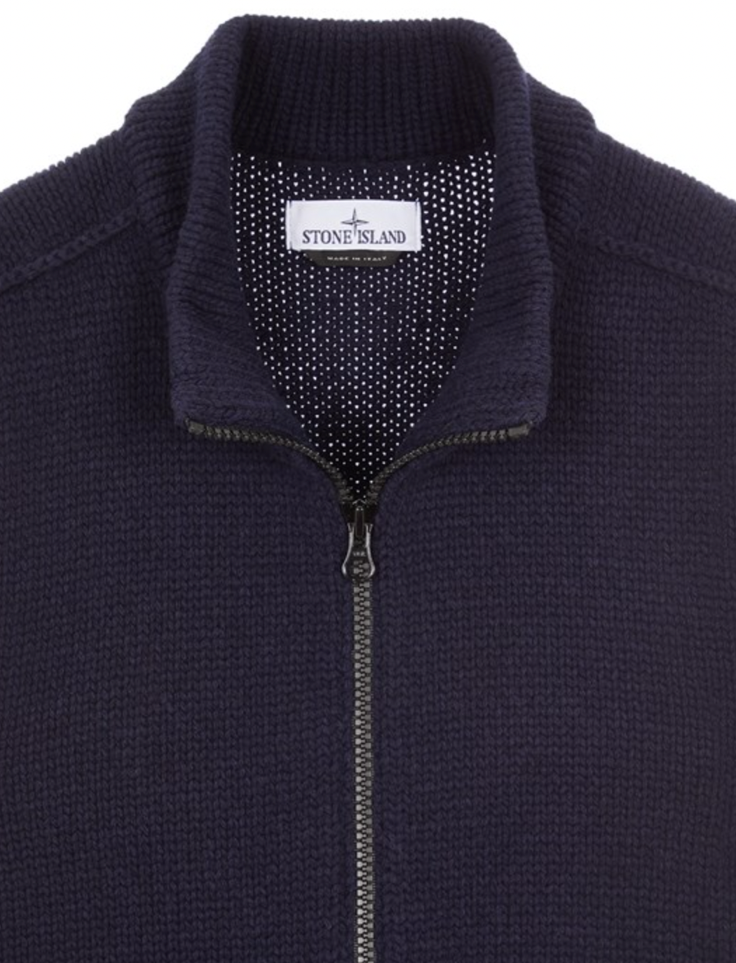 Col montant. Poches repose-mains. Insigne Stone Island sur le côté inférieur gauche. Ligne inférieure côtelée. Fermeture éclair à double sens.