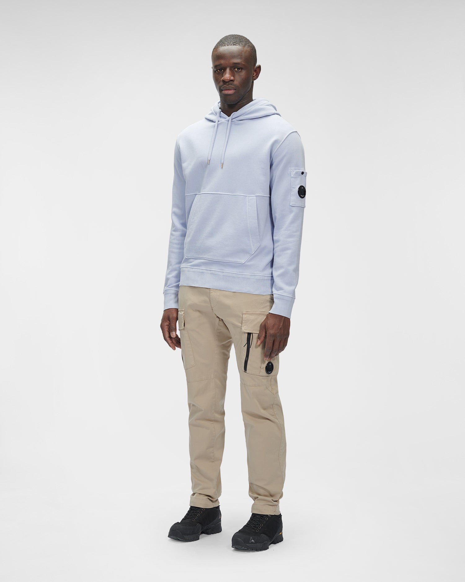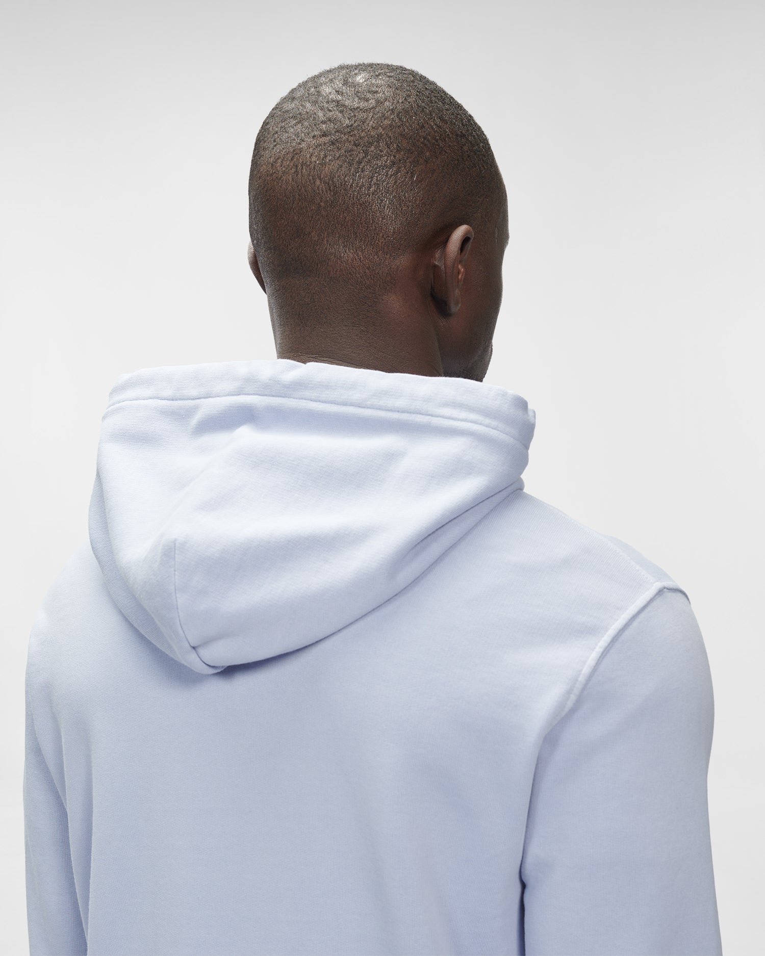 Sweat-shirt à capuche doté d'une poche kangourou sur le devant et du détail classique en forme de verre de lunette C.P. Company sur la poche de la manche. Ce modèle présente également un ourlet et des poignets côtelés, ainsi qu'une capuche réglable. Modèle confectionné dans un molleton de coton mi-épais, puis teint par réserve pour un fini ton sur ton contrasté.