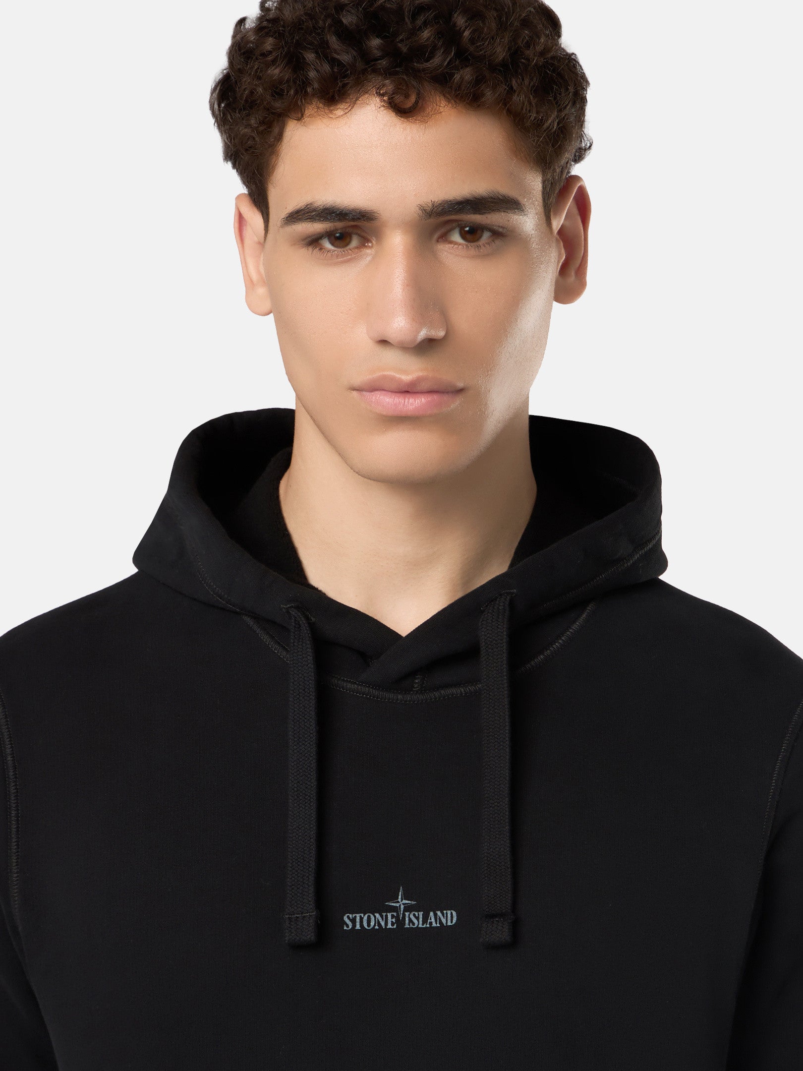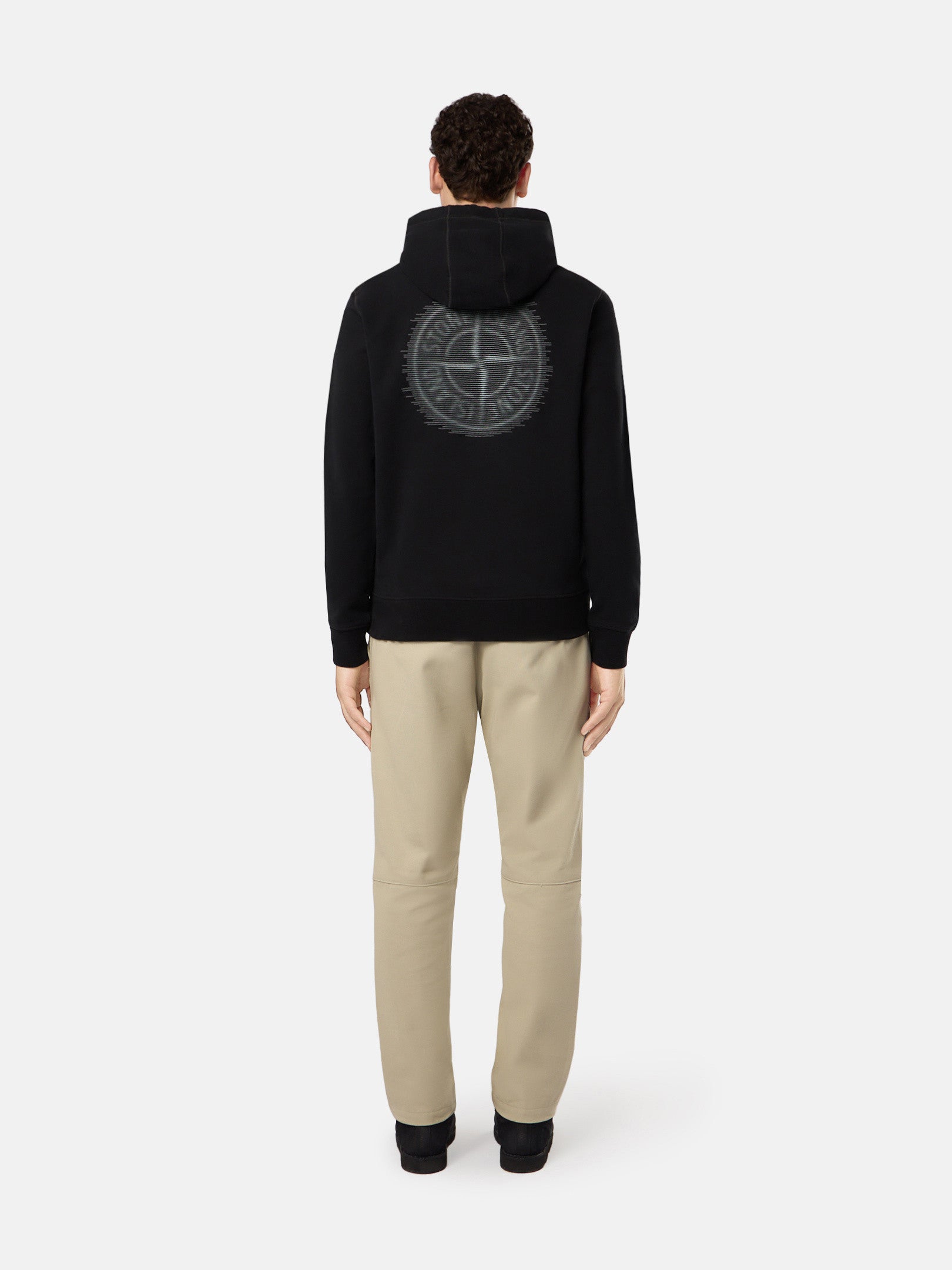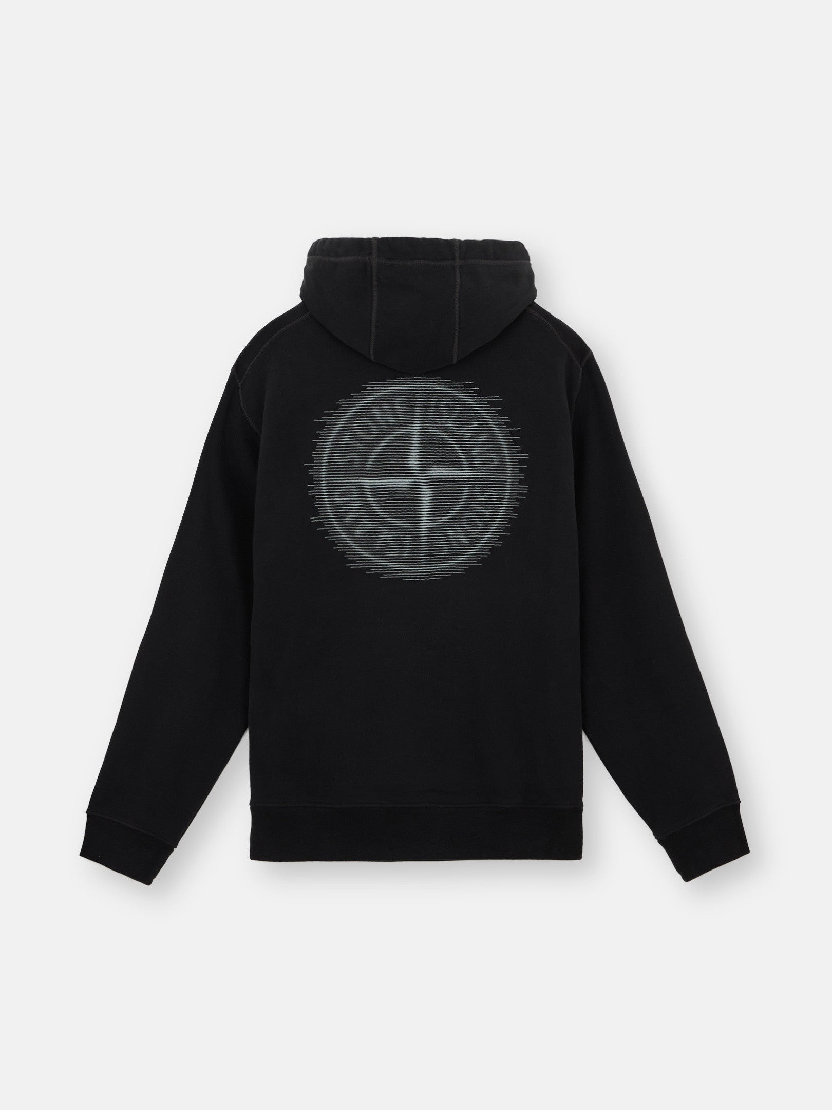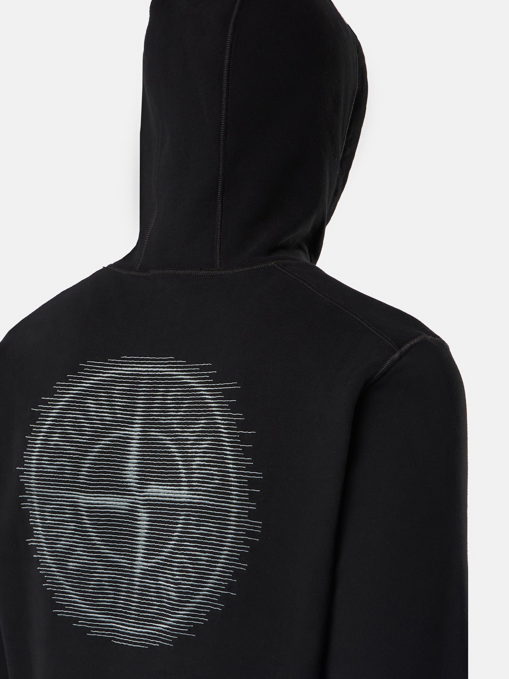 Sweat-shirt à capuche en jersey de coton, capuche avec cordon de serrage, logo « Optical Three » brodé représentant le logo Rose des Vents Stone Island dans le dos.