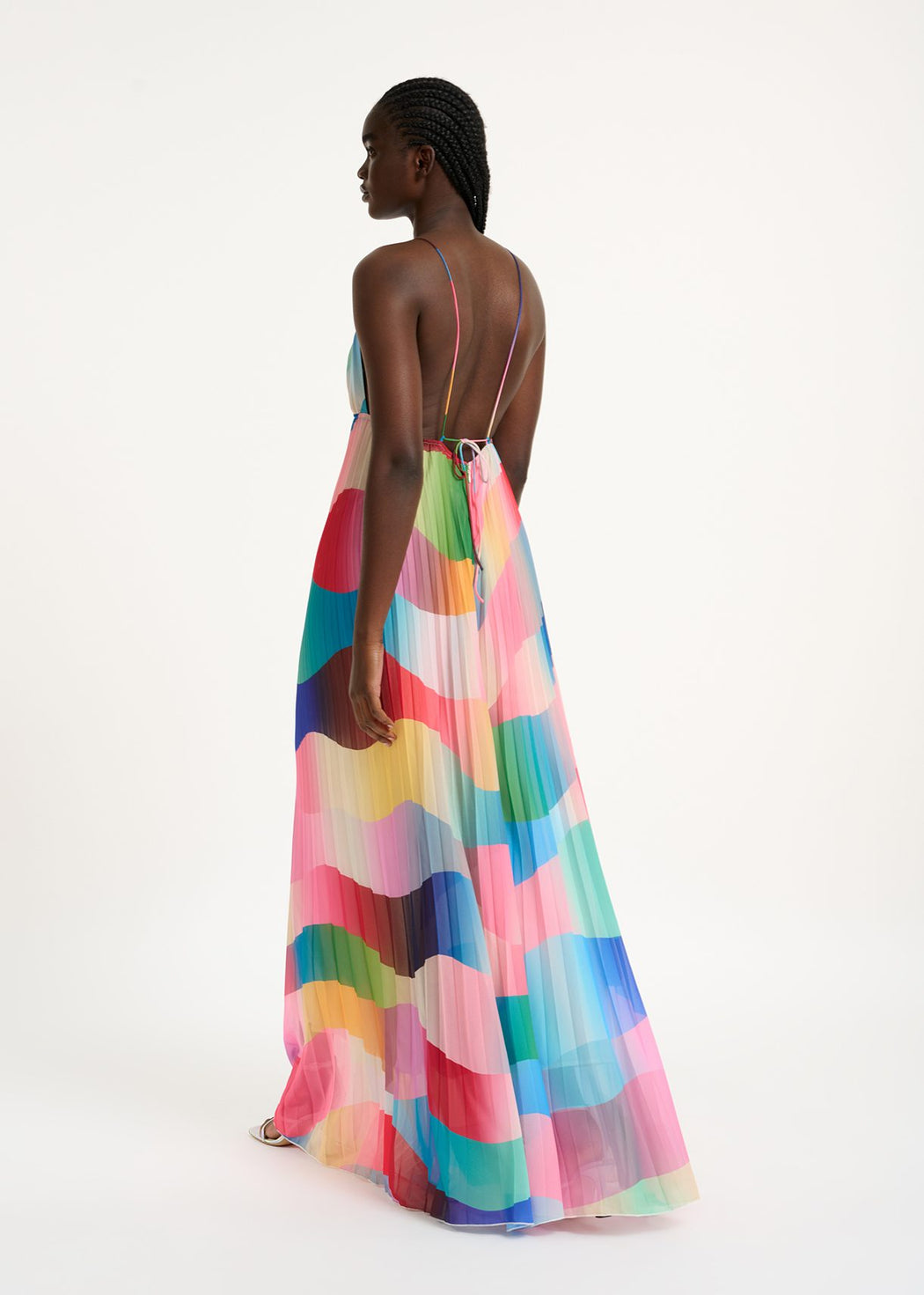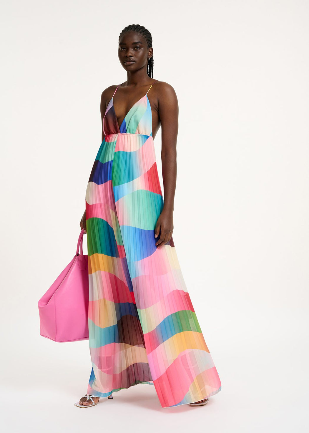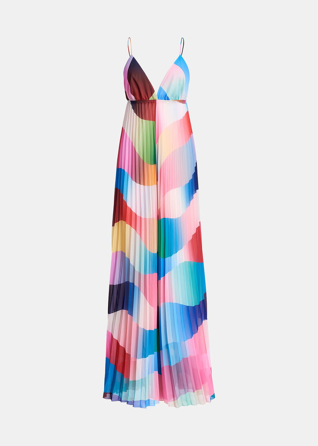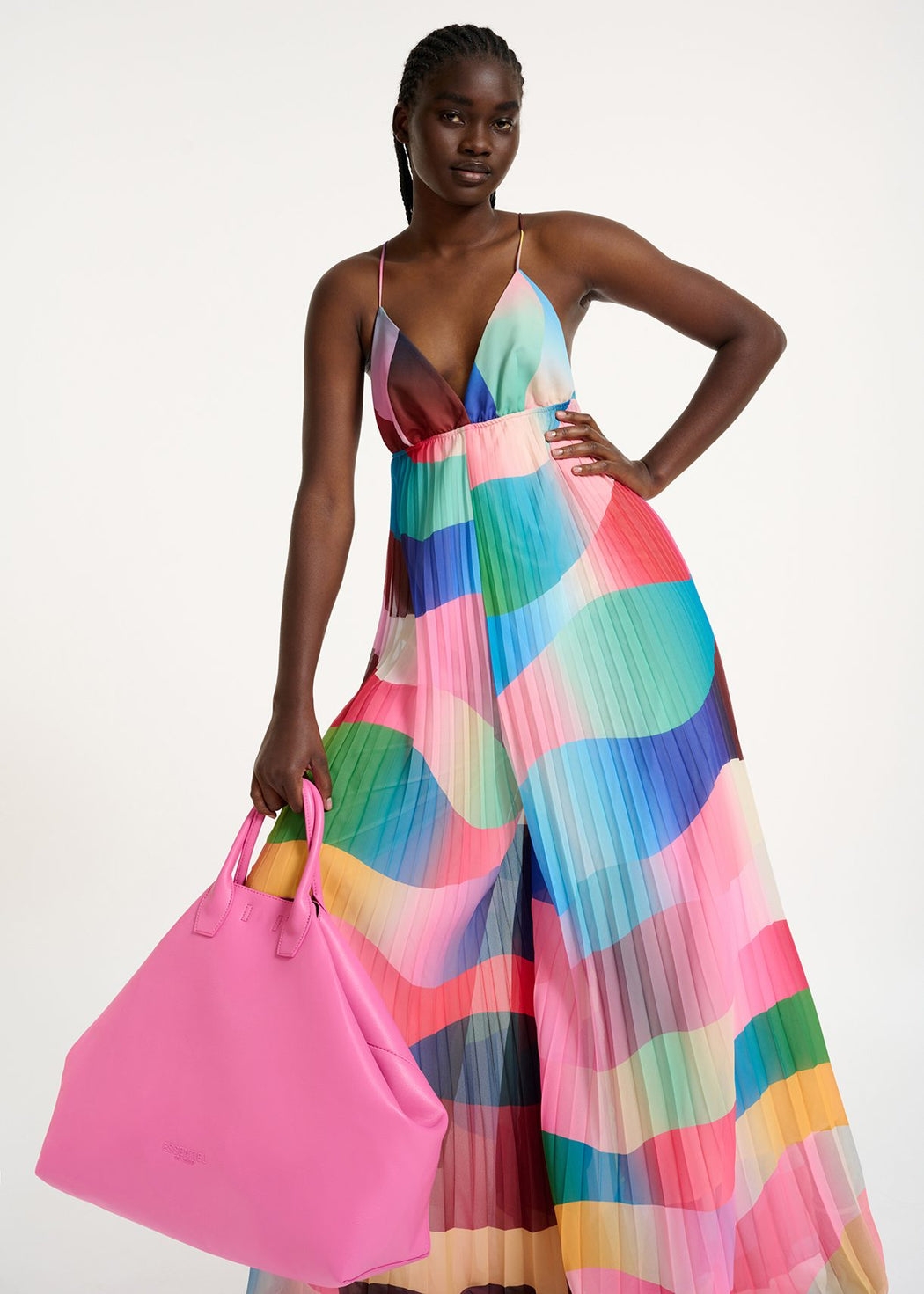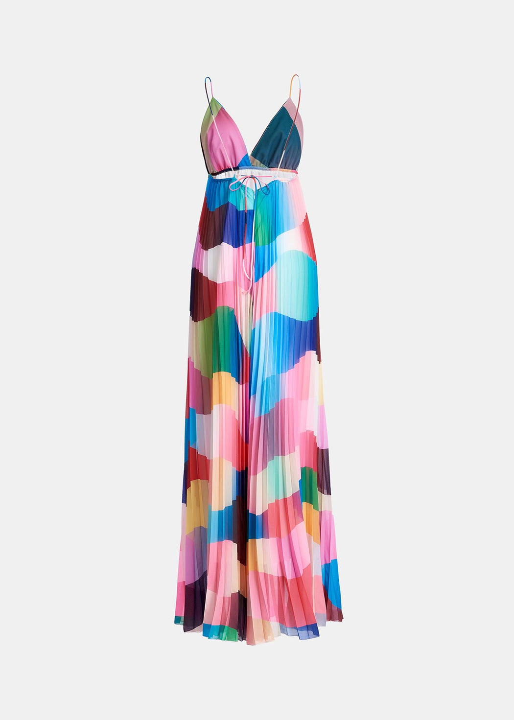 Réalisée à partir d'un polyester recyclé léger et agrémentée de plis pour jouer avec les textures et les proportions, cette combinaison vous garantit un impact maximal avec son imprimé envoûtant. Elle est dotée de fines bretelles à nouer en encolure américaine et de larges jambes qui créent un mouvement fluide à chaque pas.