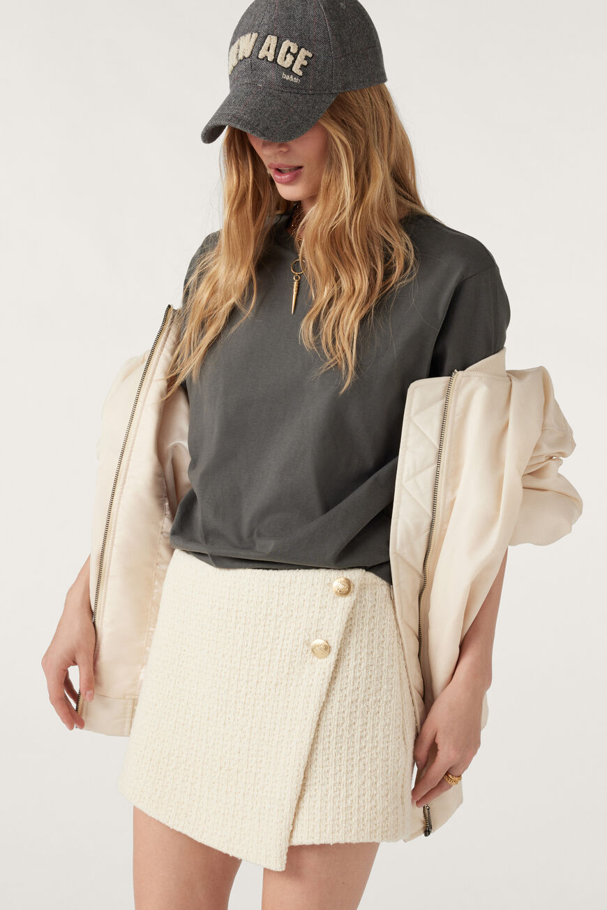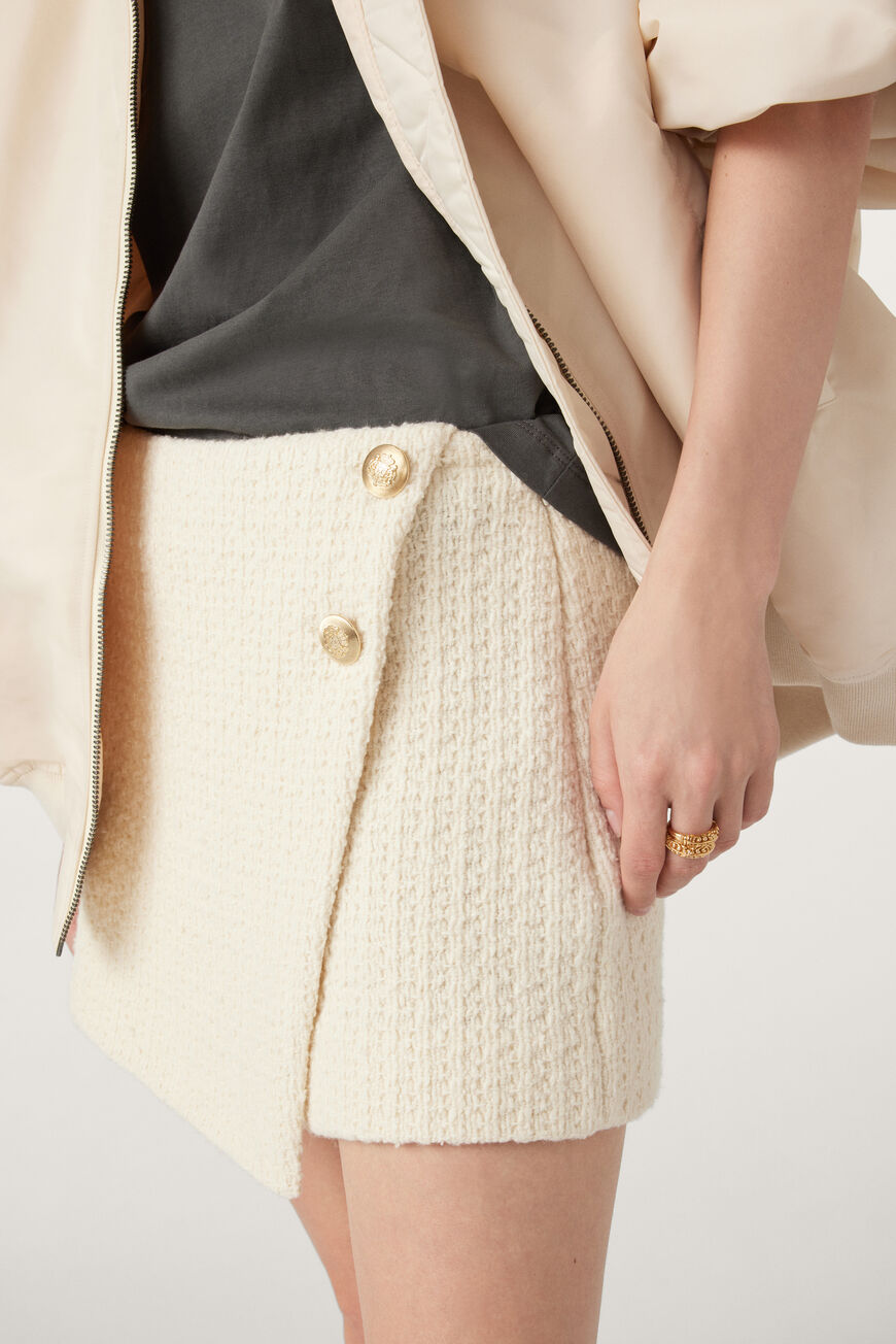 - La jupe JAVA est un modèle court de skort, c'est-à-dire une jupe short. Très confortable, cette petite merveille n'entrave pas vos mouvements et peut se porter aussi bien au bureau que pour sortir. Inspiration Twiggy 70's, vous ne pourrez plus vous en passer. En tweed avec un rabat asymétrique, cette jupe sort de l'ordinaire. On adore ses petits boutons dorés qui attrapent la lumière ! A matcher avec une jolie paire de collants et un pull ample cropé pour un style inimitable !