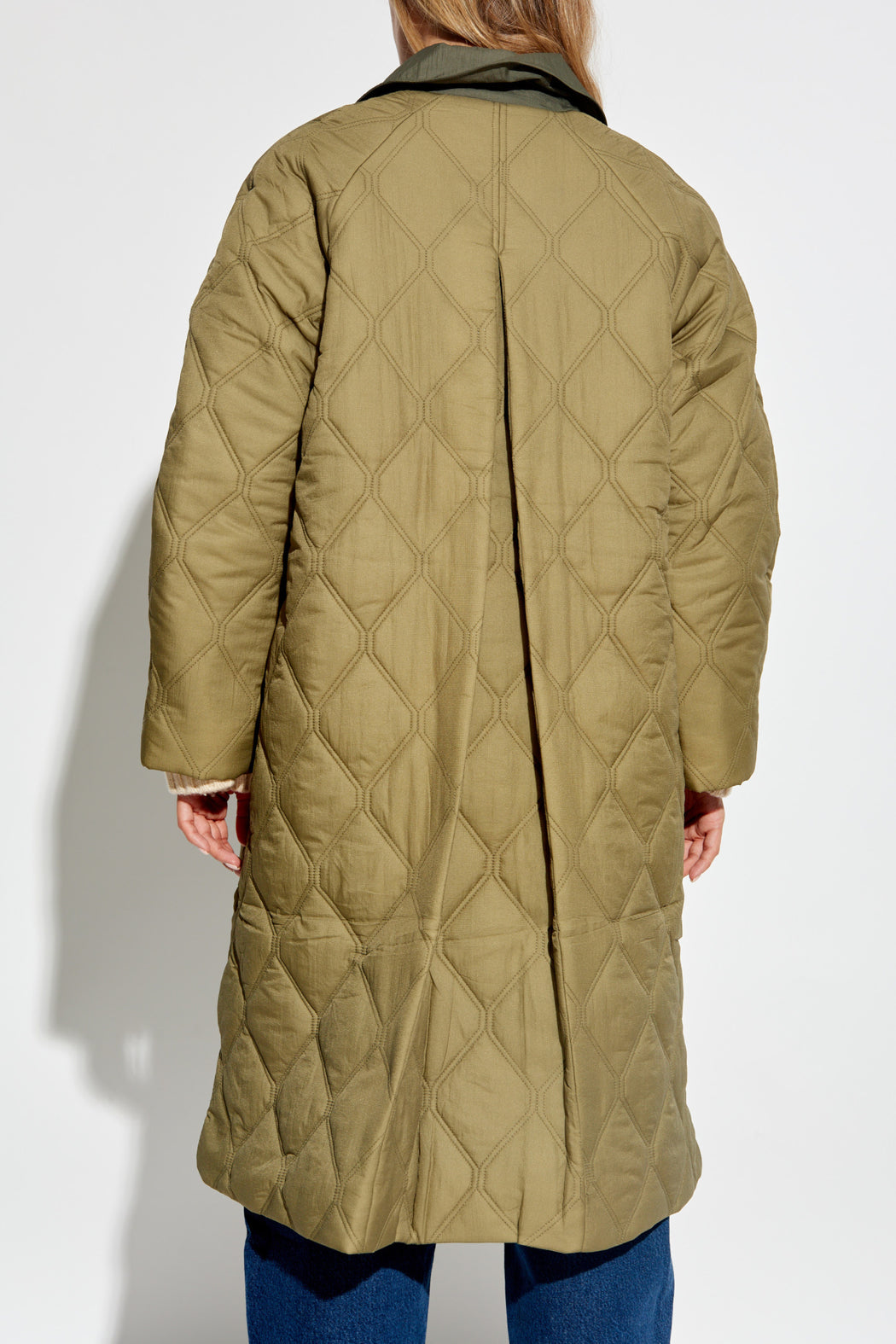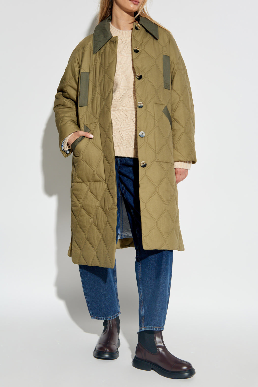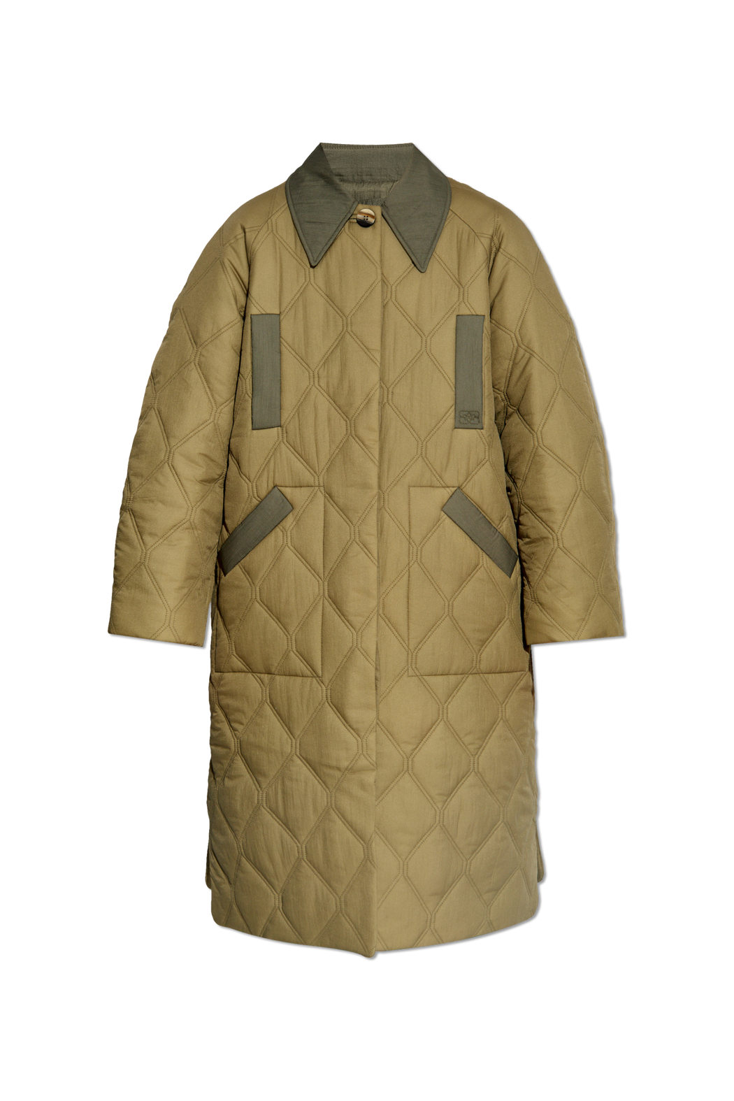 Découvrez le manteau matelassé de la marque exclusive Ganni , qui allie harmonieusement design classique et accents modernes. Parfait pour les journées plus fraîches, ce manteau long et droit à la coupe décontractée arrive jusqu'aux genoux, offrant à la fois élégance et confort.
