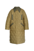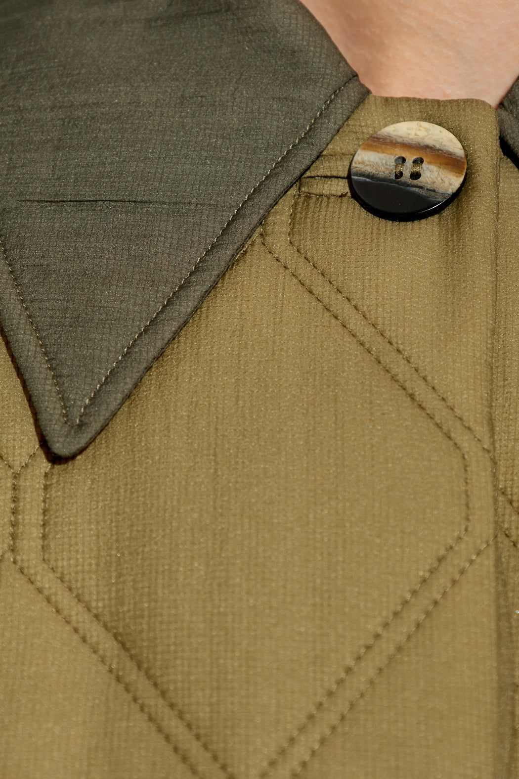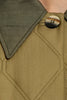 Ce produit se distingue par sa finition soignée et son motif matelassé classique en losanges. De gros boutons avec patte de boutonnage dissimulée ajoutent un élément de sophistication et de praticité. Le manteau comporte quatre poches : deux grandes poches avant en biais bordées de tissu contrastant et deux poches supplémentaires, améliorant sa fonctionnalité.
