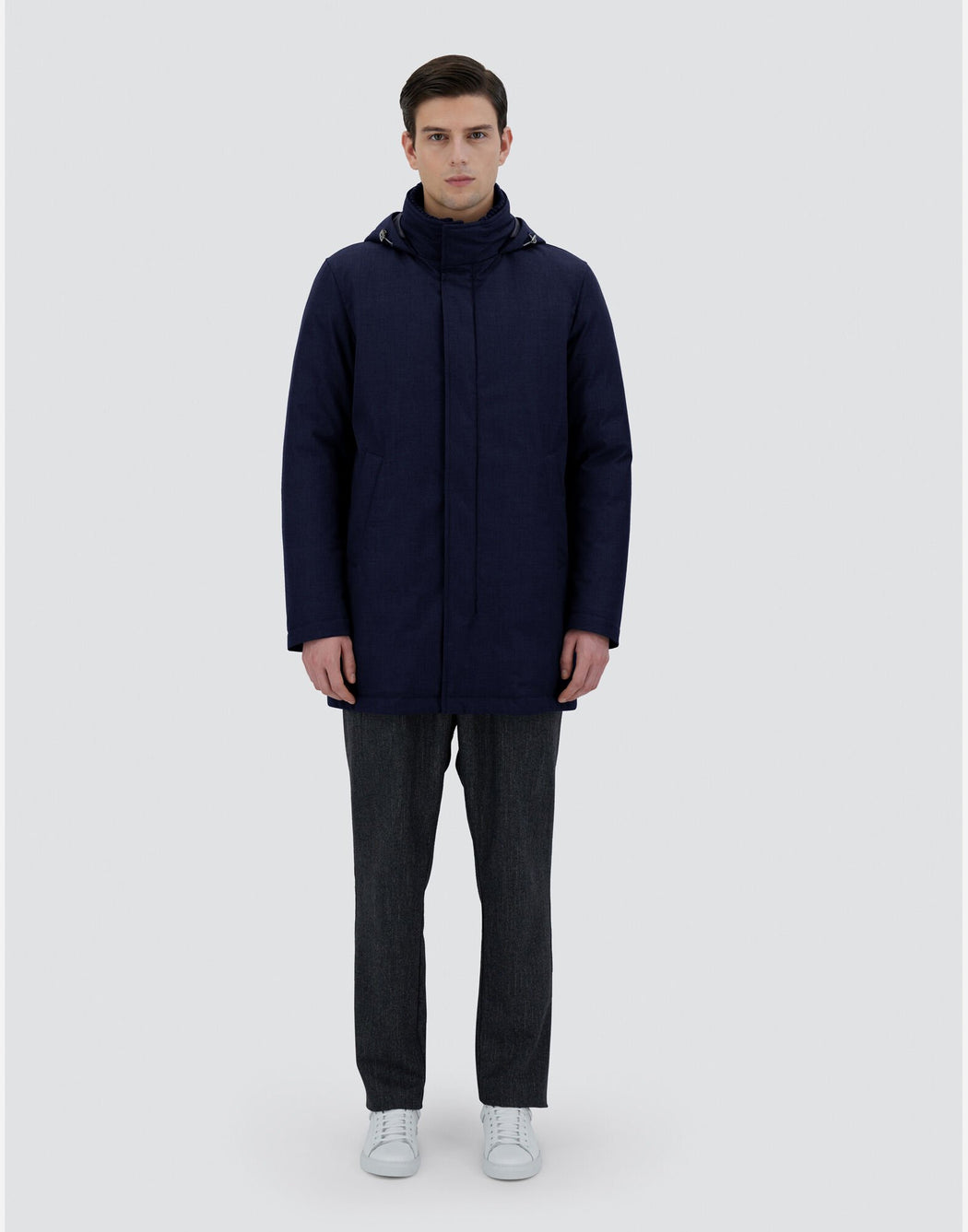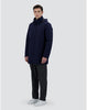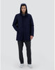 Une silhouette à la fois épurée et raffinée, conçue sous le signe de la fonctionnalité, avec une capuche dotée d’un cordon de serrage et une fermeture zippée à double curseur permettant d’ajuster la coupe.