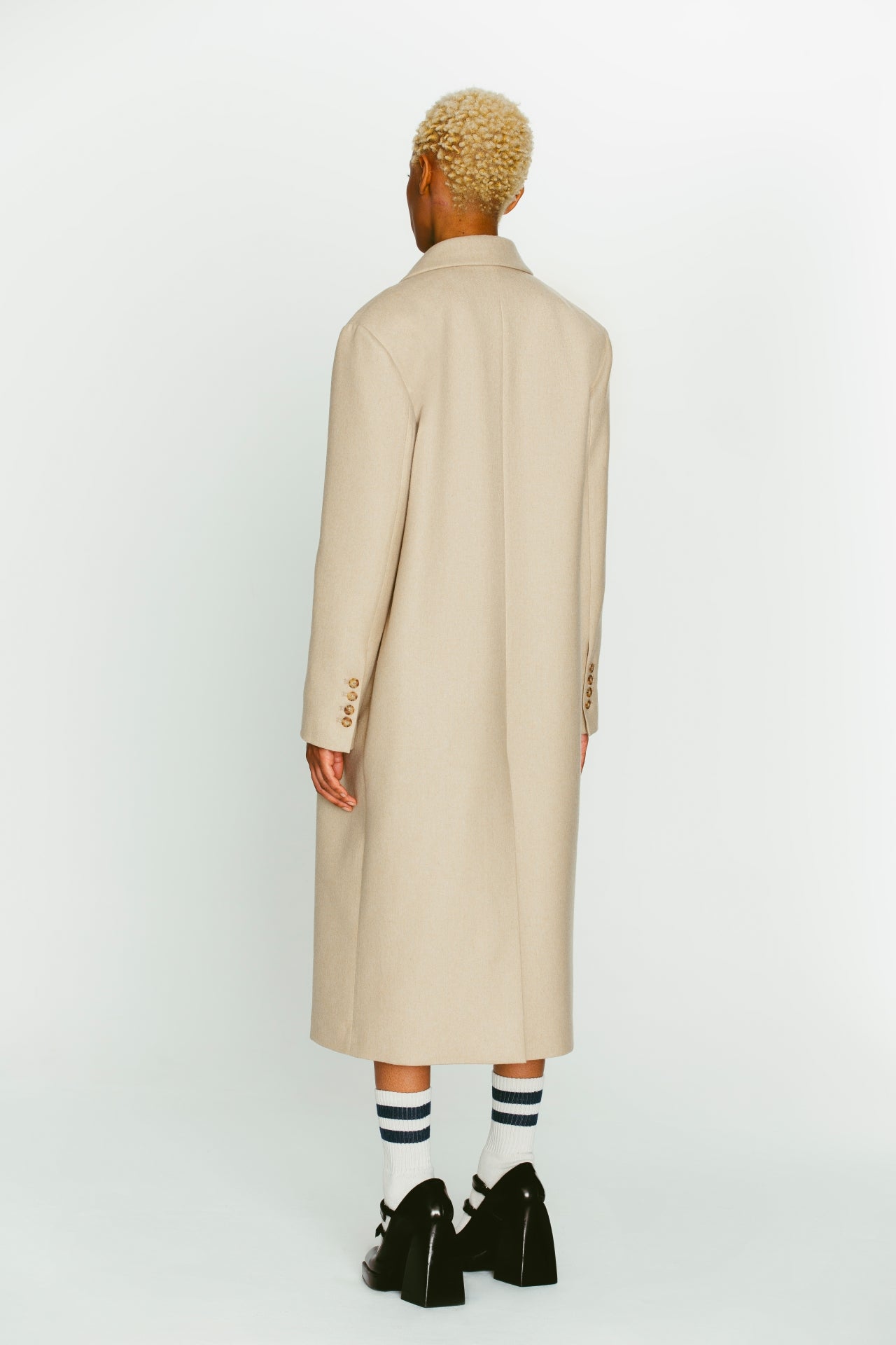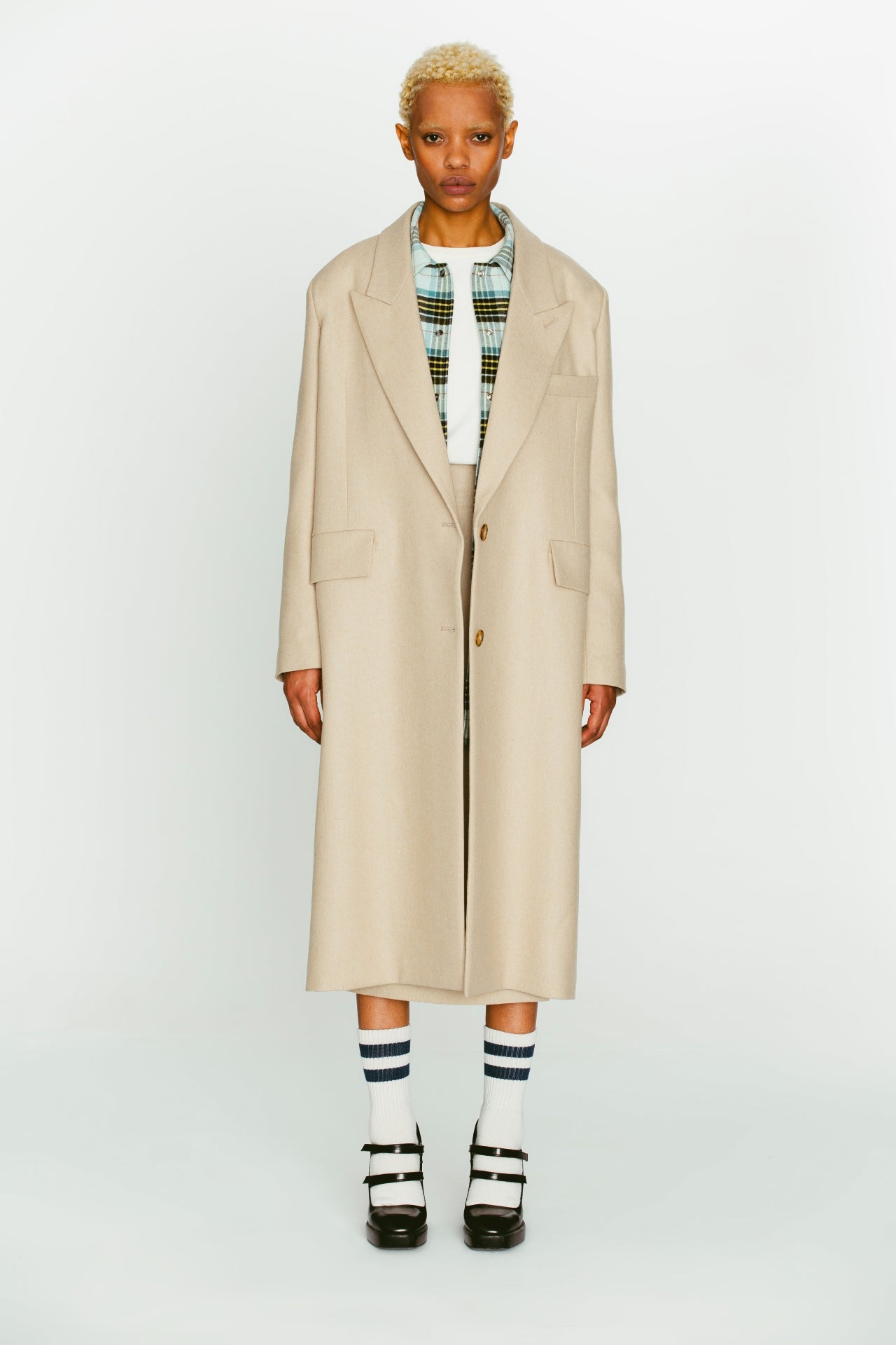 Le manteau Berry Beige est confectionné dans un épais drap de laine, entièrement doublé. Avec sa coupe ample et son col plongeant, il se superposera parfaitement à vos pulls d’hiver.