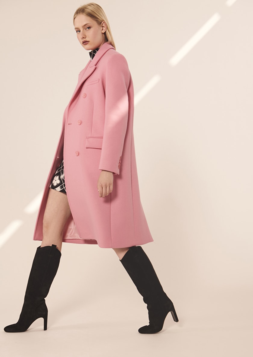 Ce long peacoat rose présente une coupe droite masculine. Son col à revers, ses poches latérales à rabat et ses manches longues à poignets boutonnés lui confèrent une allure classique et intemporelle. Confectionné en laine, il vous tiendra chaud tout au long de la saison. Il se ferme par un double boutonnage ton sur ton. Existe aussi en noir, marron et gris écossais.