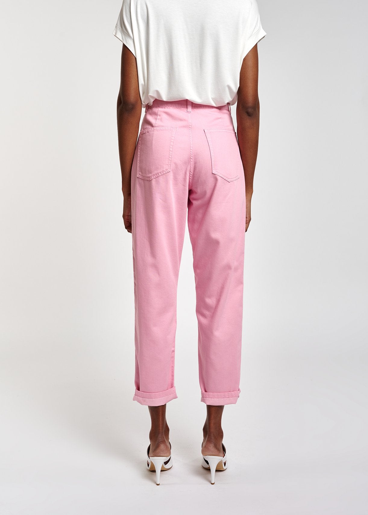 Jean à coupe ample en coton mélangé, agrémenté de pinces dans la taille qui renforcent la coupe carotte élégante.