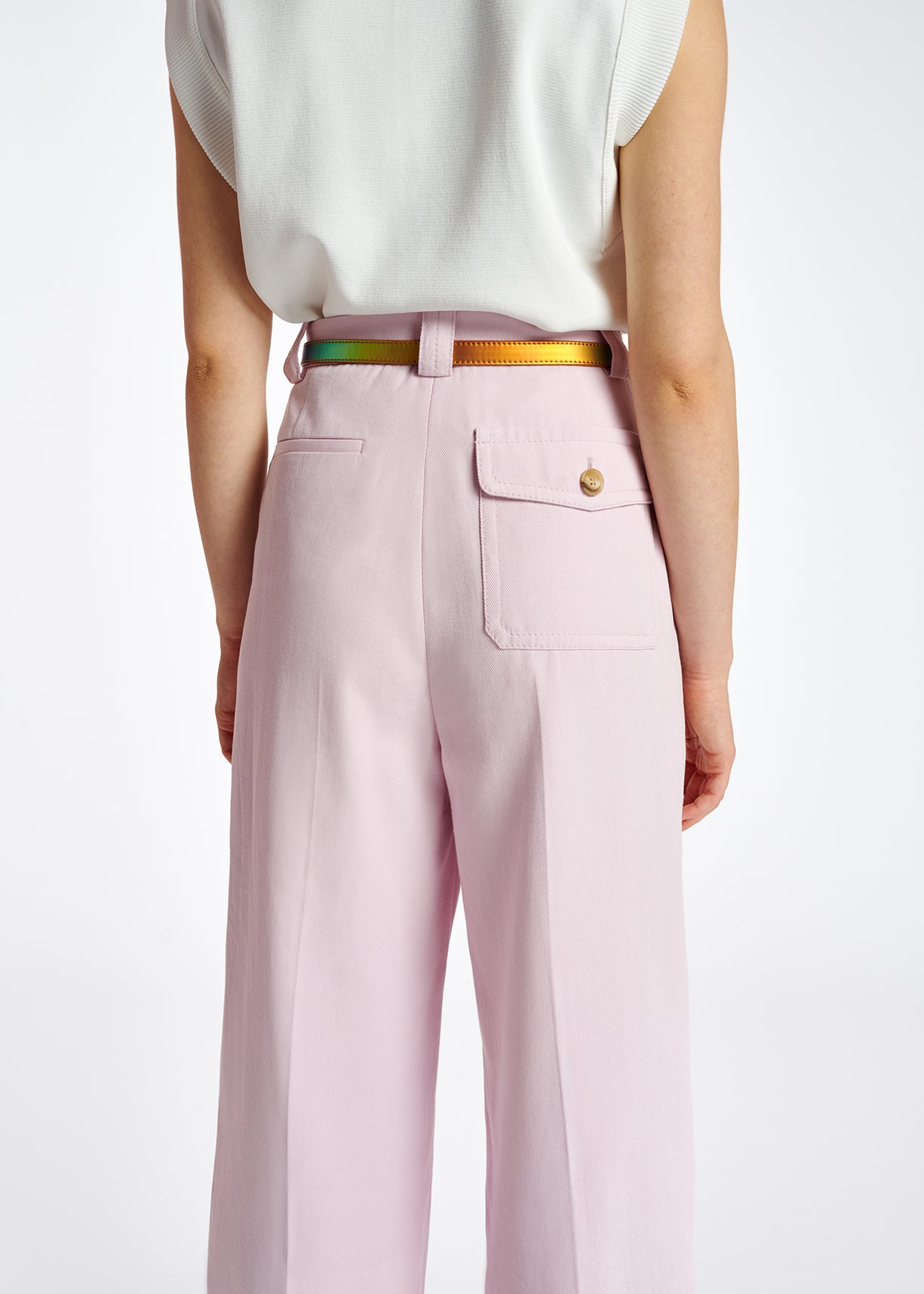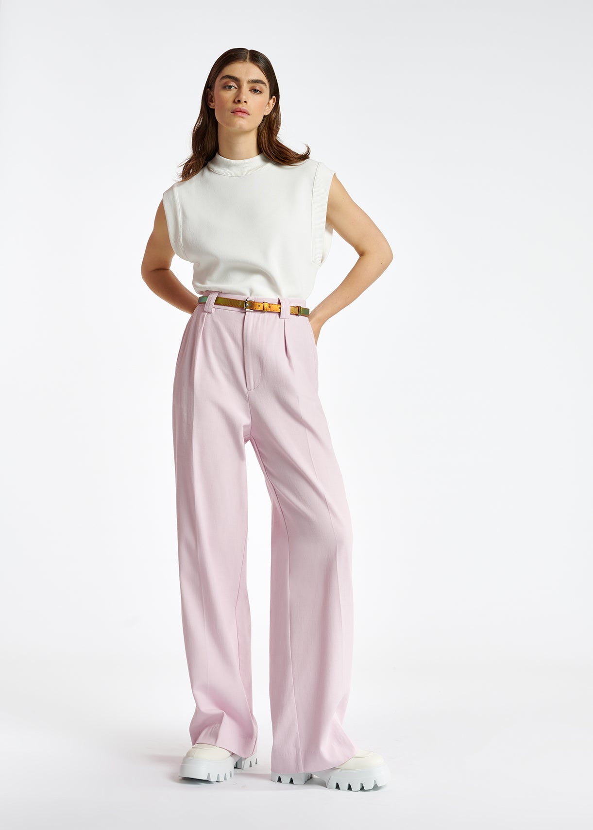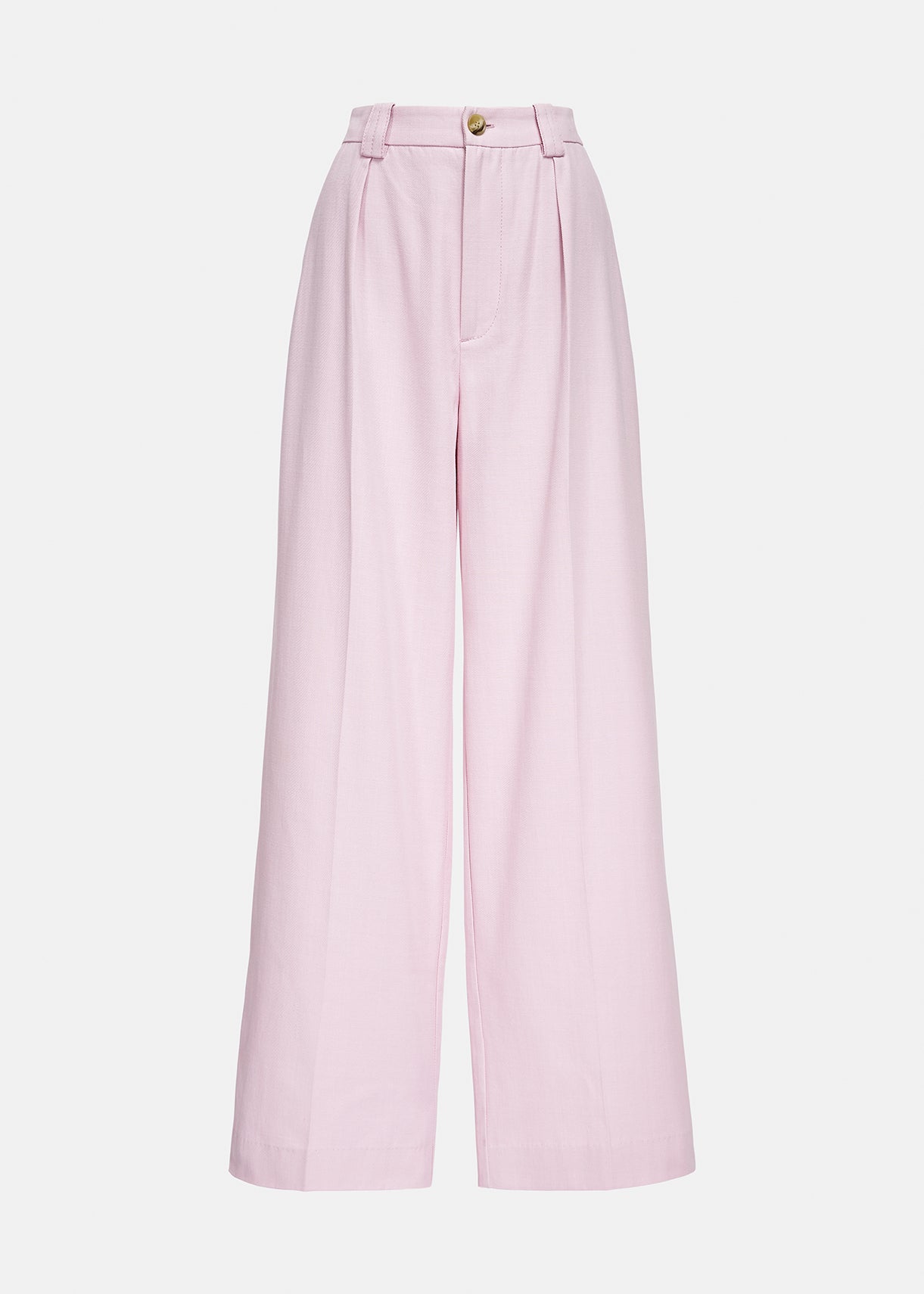 Pantalon en coton doté d'une taille ajustée flatteuse avec des plis inversés qui s'évasent en larges jambes gracieuses.