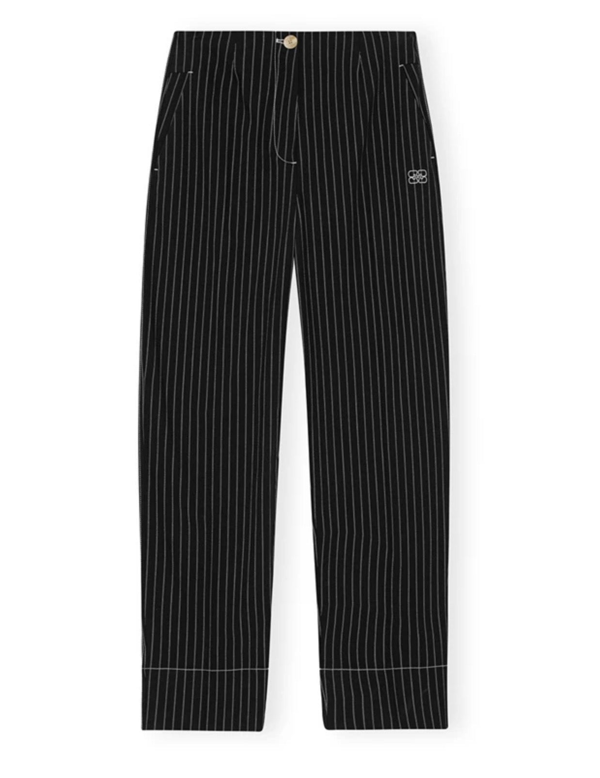 Conçues pour la femme exigeante de Henin Ciney, ces pièces conjuguent une esthétique impeccable avec une qualité irréprochable. La rayure subtile, signature du style "suiting", est ici réinventée pour une allure à la fois professionnelle et délibérément cool. Leur coupe haute offre non seulement un confort optimal, mais allonge également la jambe pour une silhouette élancée et élégante. Fabriquées avec le souci du détail qui caractérise Ganni, ces pantalons sont une invitation à embrasser un luxe accessible et un style qui traverse les saisons. Idéales pour le bureau ou pour une sortie élégante, elles deviendront un pilier de votre garde-robe, prouvant qu'un design conscient peut rimer avec une sophistication sans effort.