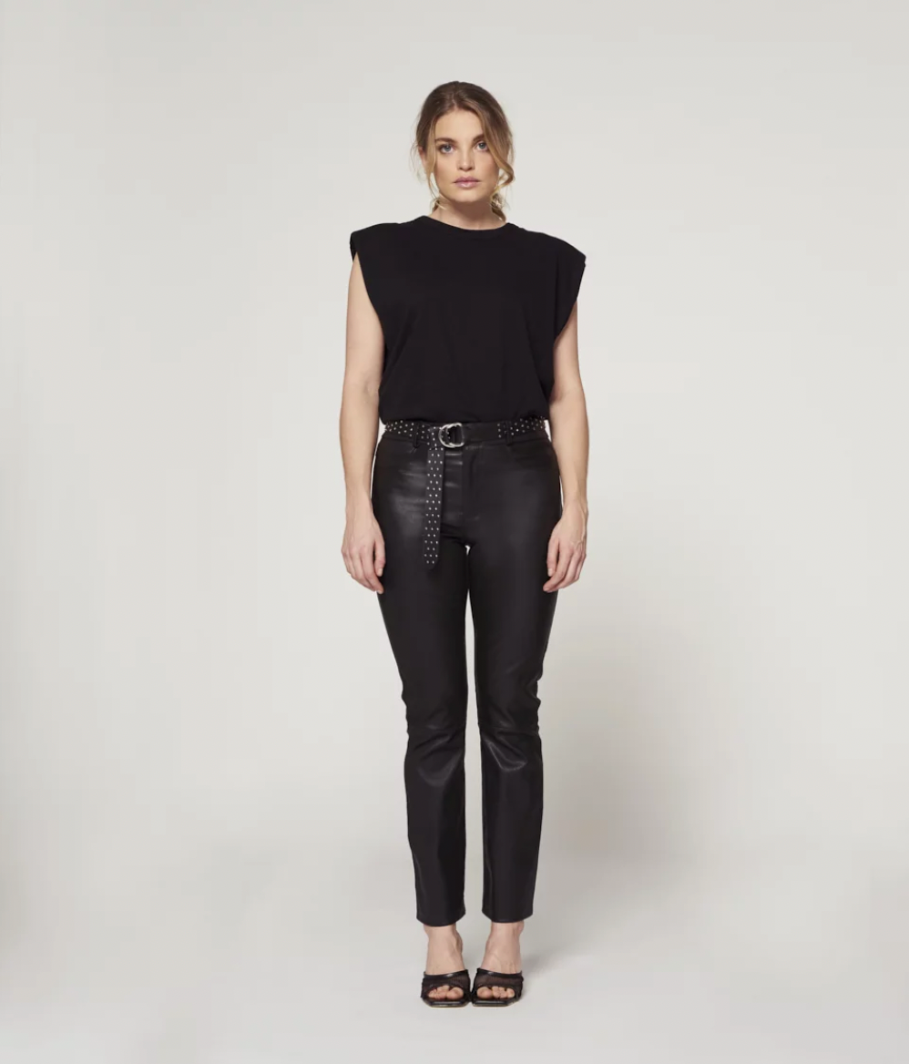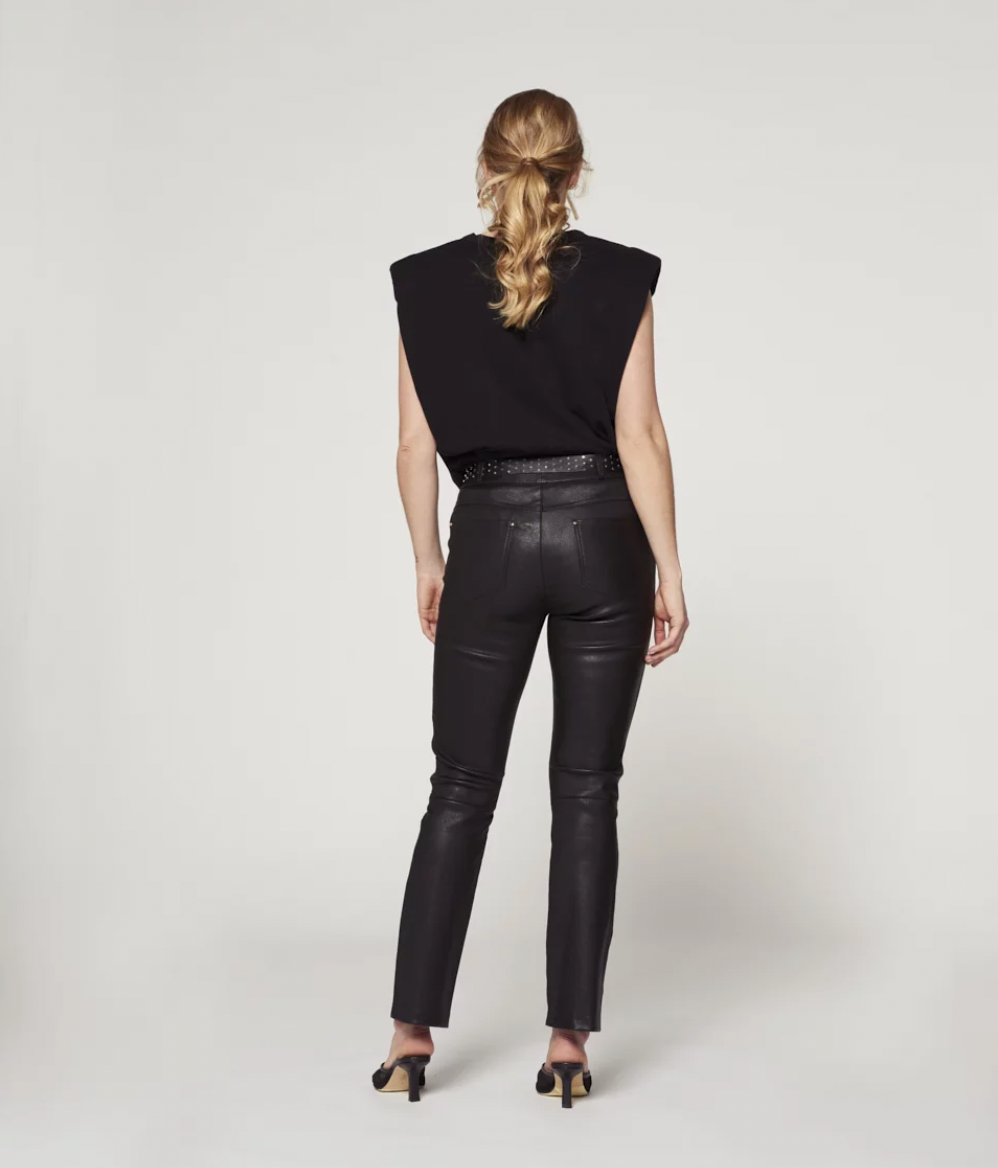 Le pantalon Peggy est le pantalon ultime. Le Peggy a une coupe plus haute et tombe en douceur le long des hanches, la jambe plus courte et ample crée un effet ludique qui donne un supplément à toute tenue. Le pantalon est amusant à combiner avec une chemise à manches larges pour renforcer l'effet "flair", ajoutez un talon et la tenue est prête pour une soirée amusante dans une superbe tenue.