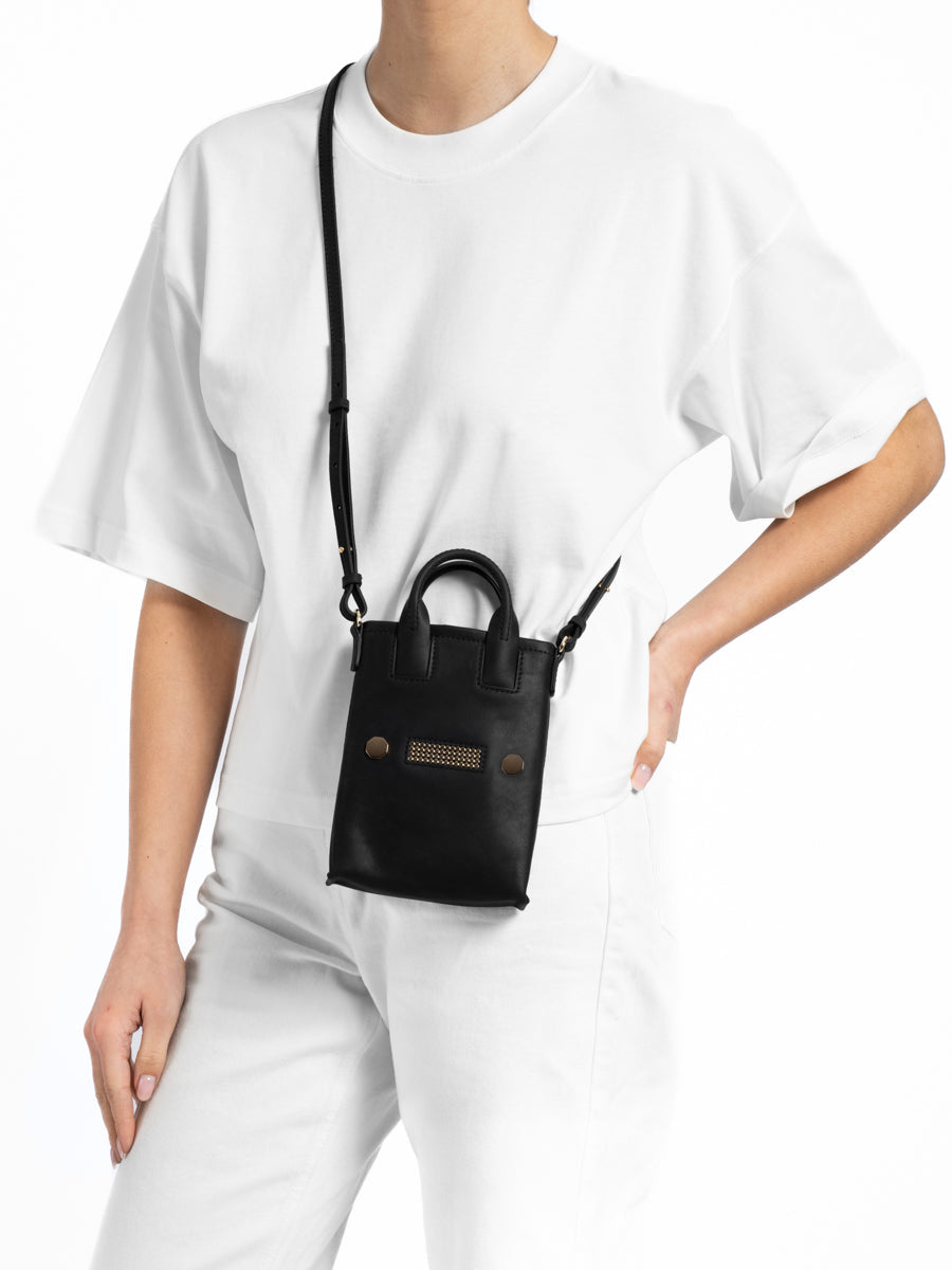 Because active women always need to have their phone within reach, Clio Goldbrenner has designed a little jewel: TESSA! Ultra-modern, this mini bag allows you to carry your mobile phone and your cards from morning to night, so you can switch from office mode to paaarty mode in the blink of an eye!