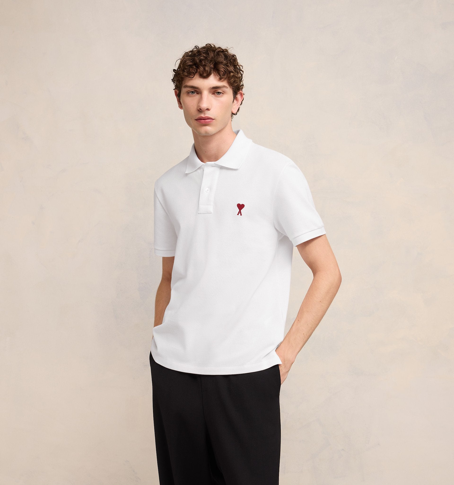 - Tonal AMI embroidery under back neckline