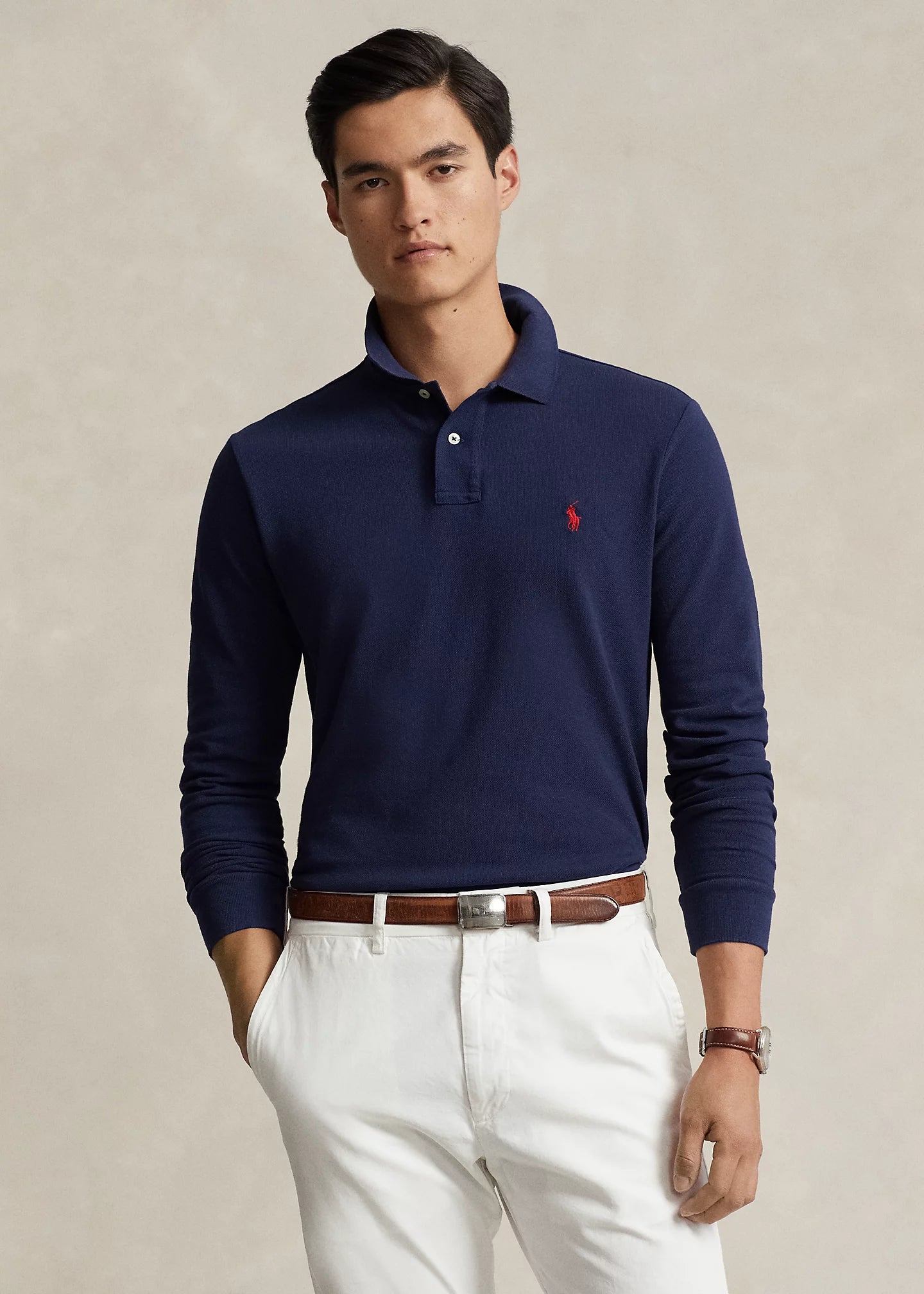 Standard du style américain depuis 1972, le polo a souvent été imité, mais jamais égalé. Au fil des décennies, Ralph Lauren a revisité son style distinctif dans une variété de couleurs et de coupes, tout en gardant la qualité et l'attention au détail de l'original emblématique. Ce modèle à manches longues est cintré au niveau du corps et délavé pour plus de douceur. Ralph Lauren s'associe à Better Cotton™ pour améliorer la culture du coton dans le monde. Better Cotton forme les agriculteurs pour utiliser efficacement l'eau, prendre soin de l'état du sol et des habitats naturels, réduire l'utilisation des produits chimiques les plus nocifs et mettre en œuvre les principes du travail bienséant.