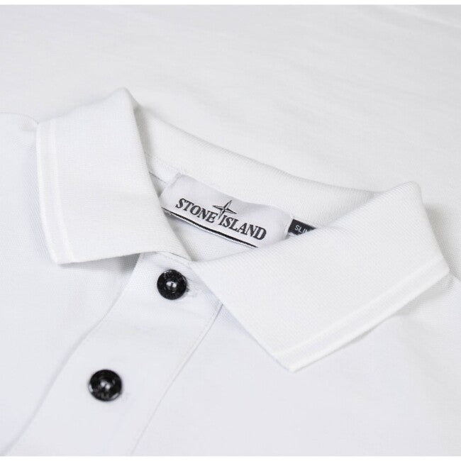 DÉTAILS DU PRODUIT RECHERCHE ET TRAITEMENT DES TISSUS STRETCH COTTON PIQUÉ : Polo à manches courtes en coton piqué. STYLE Coupe étroite. Col et bords des manches côtelés. Fermeture du col à deux boutons. Logo Stone Island Compass patch sur la poitrine. Petites fentes latérales à l'ourlet inférieur avec application de bande intérieure.