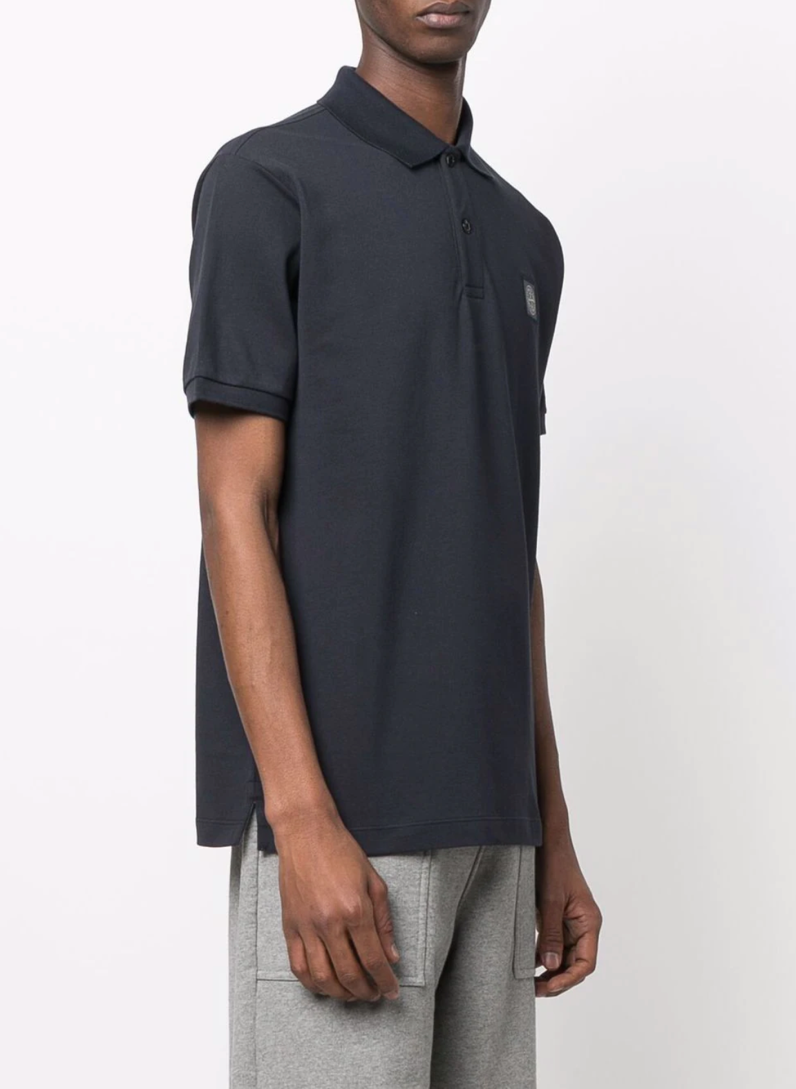 Col côtelé. Fermeture du col à deux boutons. Logo Stone Island Compass patch sur la poitrine. Bord côte à l'extrémité des manches. Fentes latérales au bas du vêtement avec application intérieure de ruban rayé.